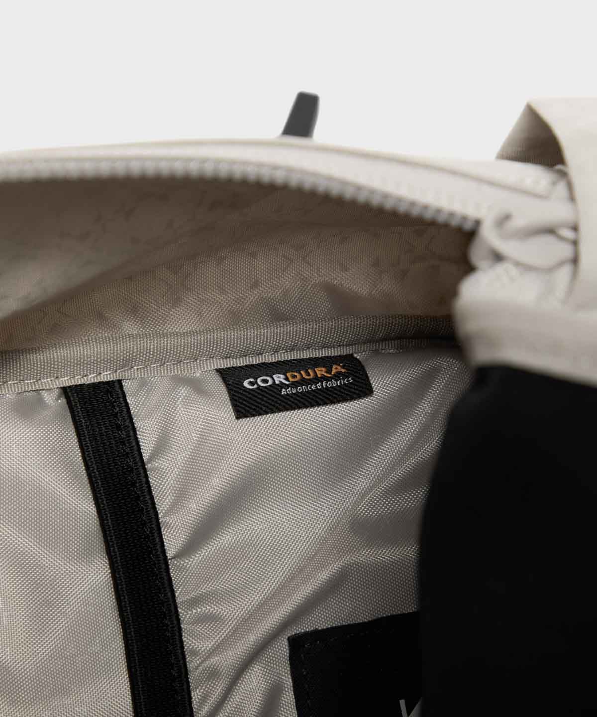米国 Dupont 社が開発した CORDURA®に、はっ水加工と塩縮加工を施した生地を本体に使用。