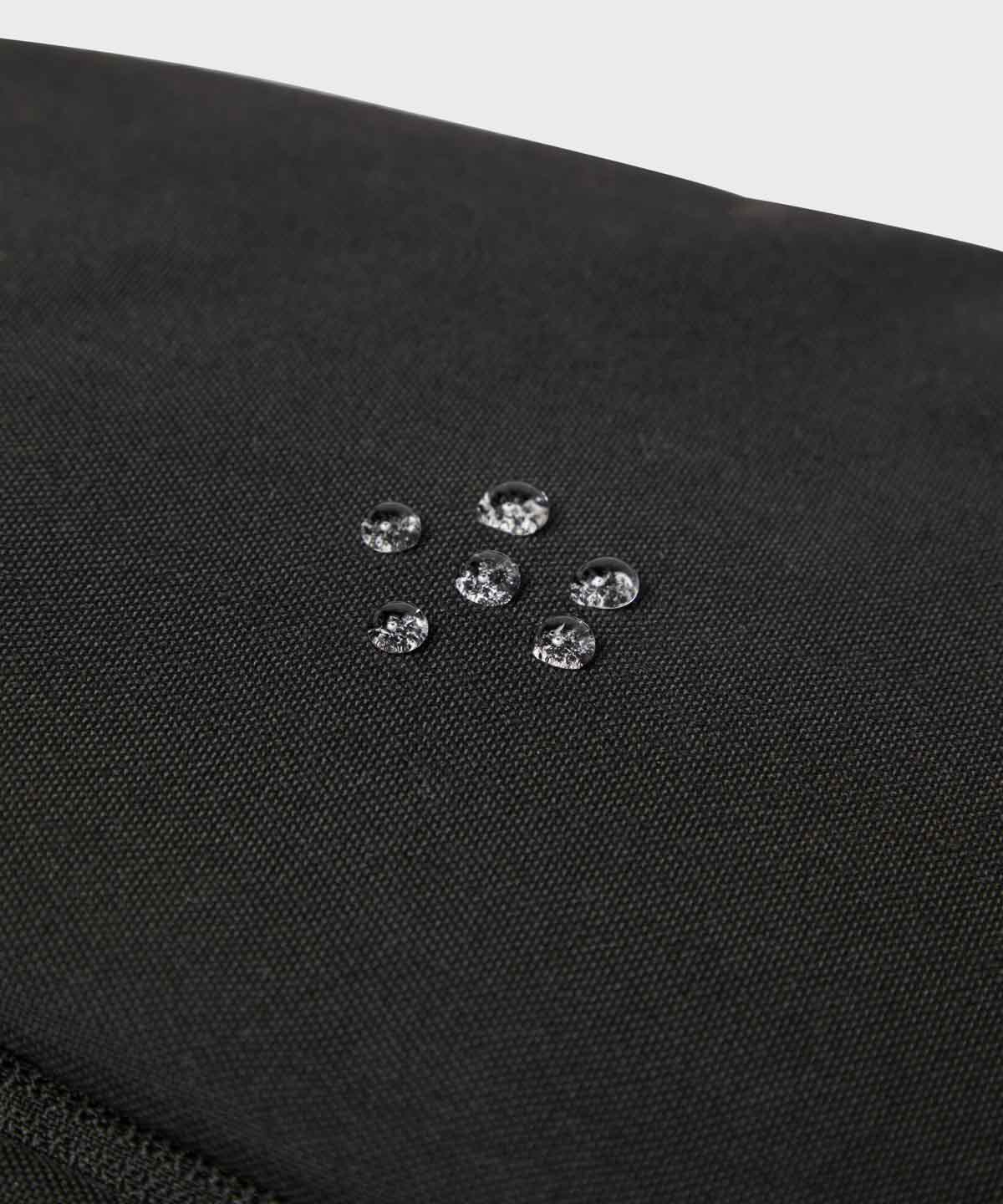 本体にはっ水加工を施した500D CORDURA® TrueLock™を使用しており、高い強度と耐久性に加えて、繊維自体が既に色を有しているため色において優れた堅牢性があり、染色工程を一切必要とせず、環境負荷を考慮した製造工程で作られた素材。