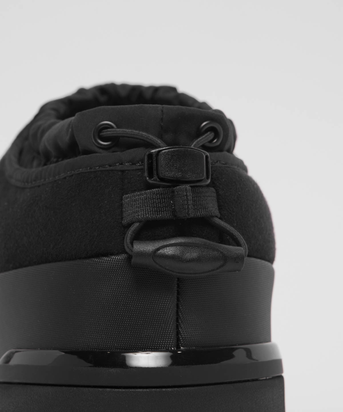 前シリーズの履き口のギャザー構造からドローコードタイプに変更する事により、ヒールの部分でフィッティングを調節可能に。