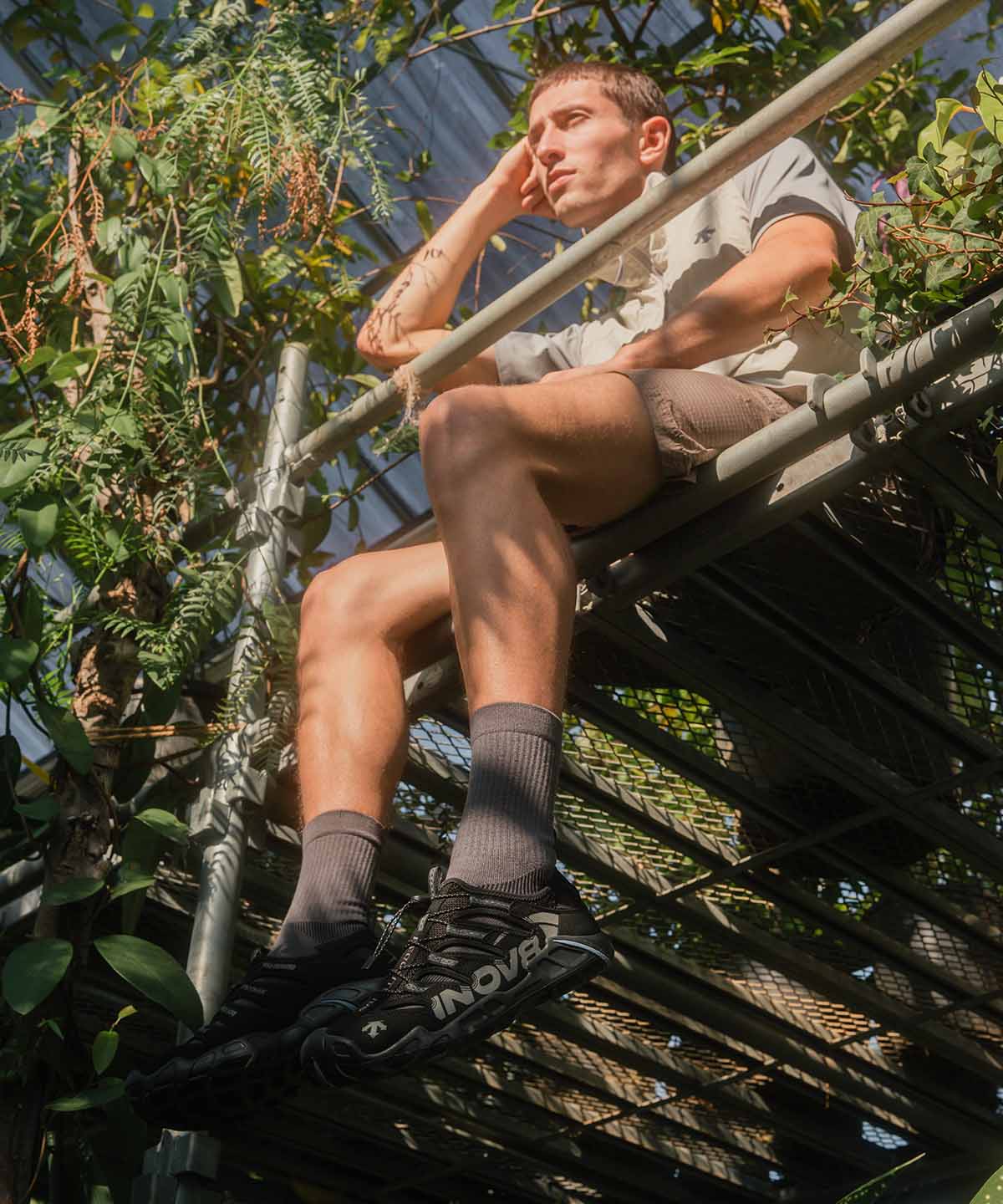 INOV8ロゴとシューレースにリフレクターを配し、夜間のストリートにおける安全性と「都市型デザイン」としての洗練さを両立。