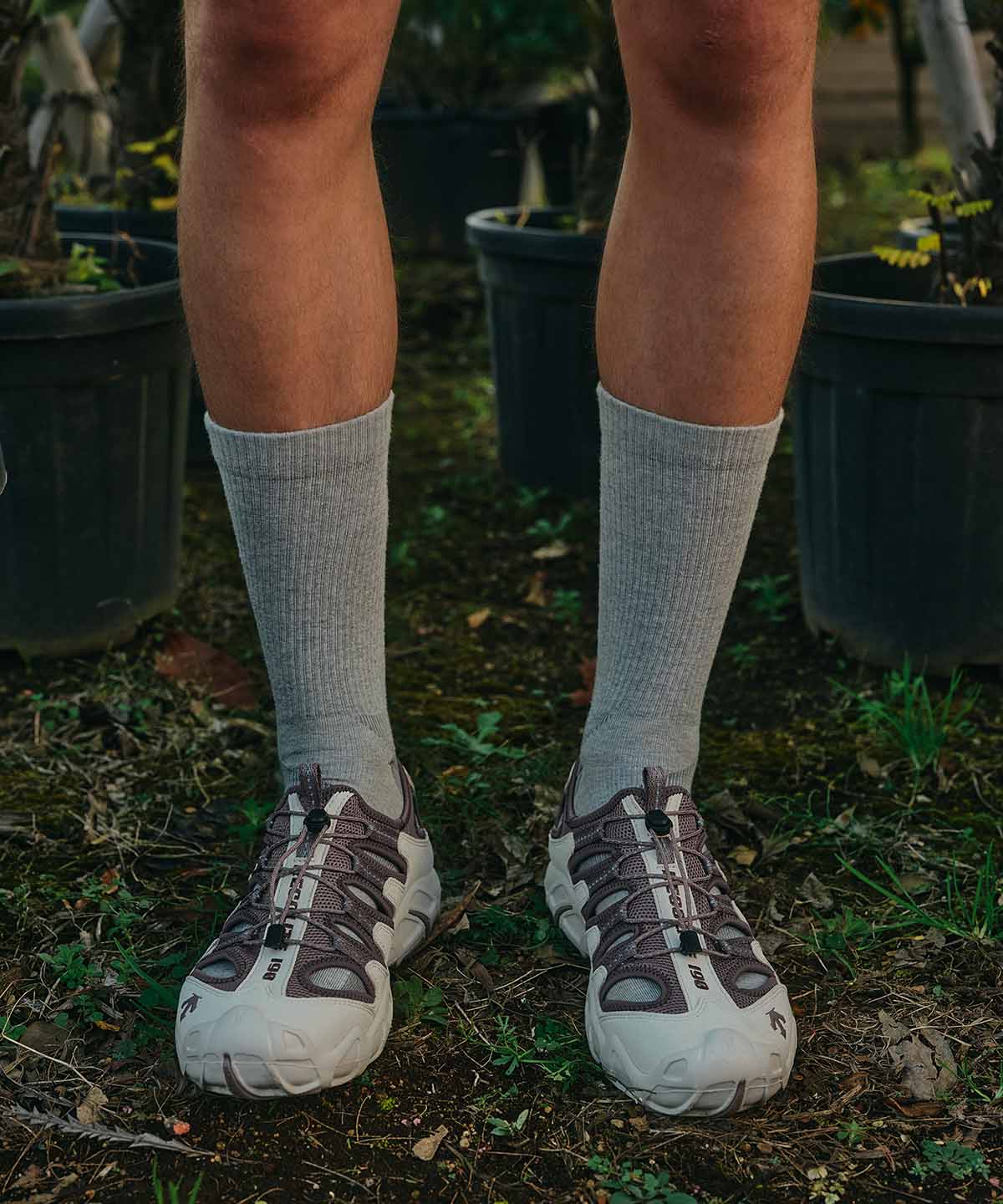 「レコライト 190 UNI」は、トレイルランニングのレース前後にリラックスして履くためのアウトドアサンダルとして開発。コンフォートな幅広設計により、アウトドアシーンや日常の街履きとして人気の1足。