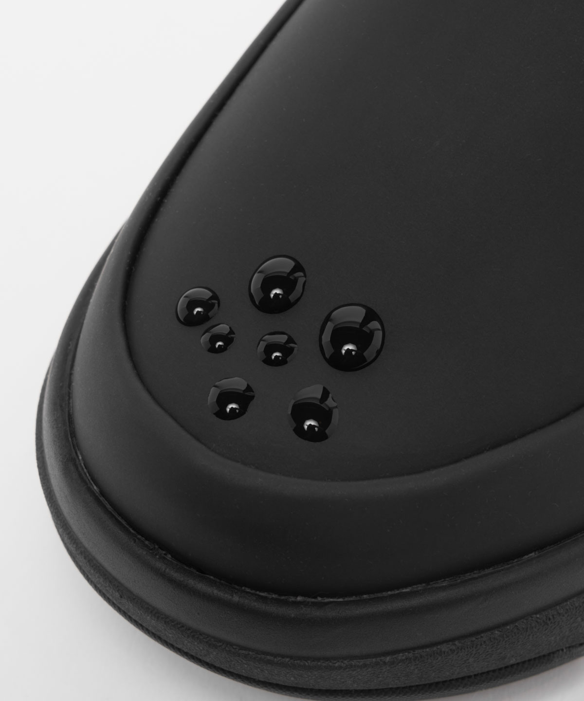 天然皮革のスウェード生地がもたらす高級感と透湿防水機能を両立。 | ローカット仕様。ギャザー構造ですっぽり履ける快適さが魅力。 | 通勤にも対応するスニーカータイプでありながら、アウトソールにヴィブラムを搭載。 |
