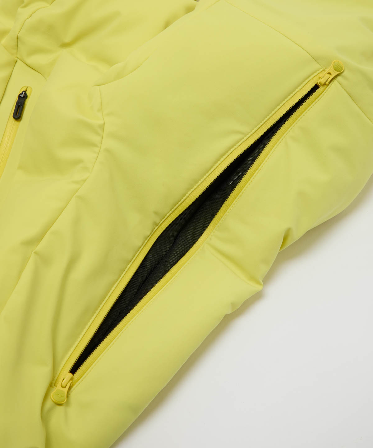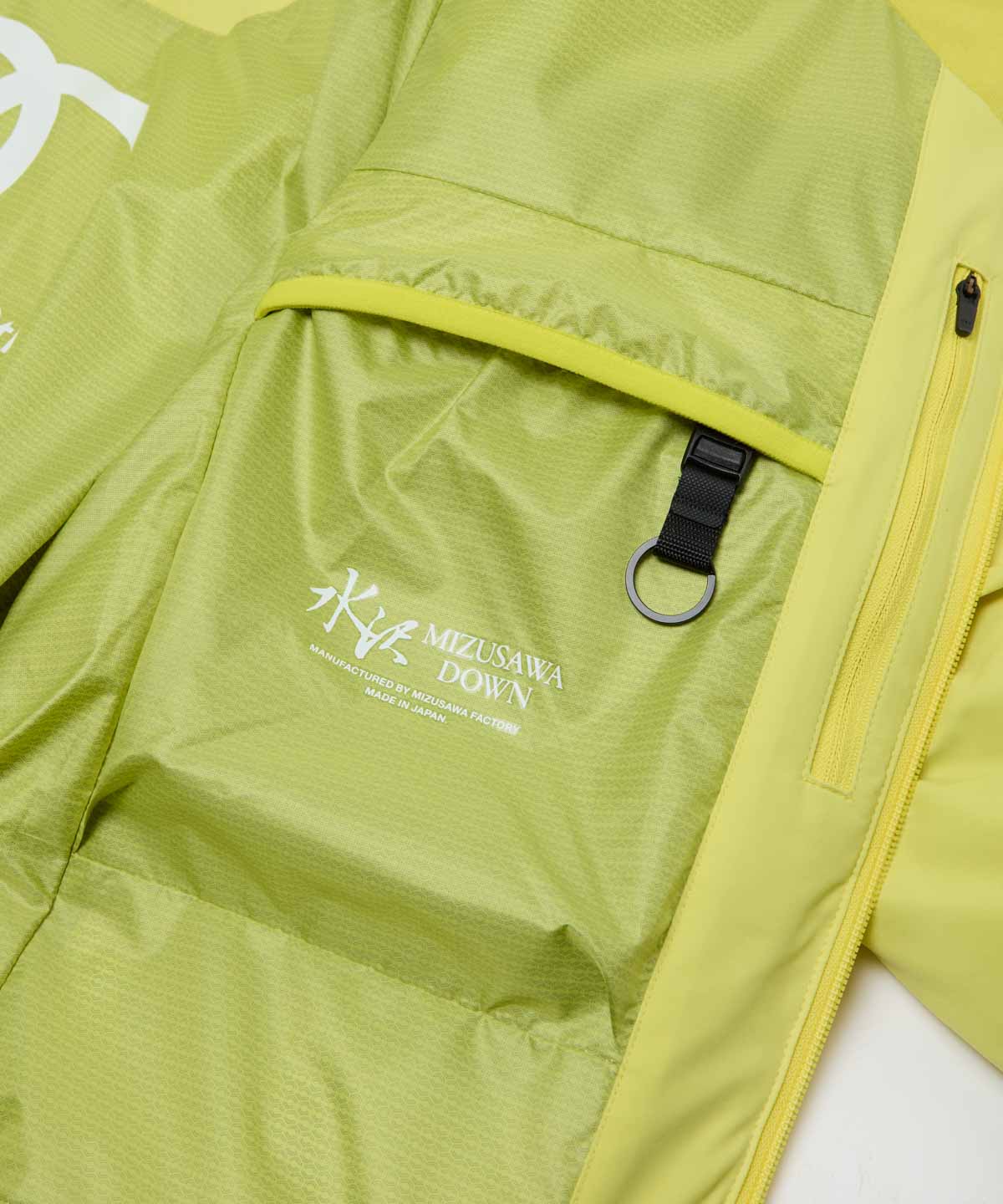 90周年ロゴを裏地にプリントし、左袖にも特殊な加工で記念ロゴを表現。また、フロントとポケットのファスナーテープにも特別なロゴをあしらったデザイン。熱接着ノンキルト加工とシームテープ加工により、水分含浸を防ぎ、高い耐水性を実現。両胸の内側にポケットを配置し、取り外し式のキーチェーンを追加して収納性を確保。フードには、雨や雪などの悪天候下での着用を考慮し、フードに水や雪だまりを防ぐパラフードシステムを搭載。フロントジッパー部分に採用されたデュアルジップベンチレーションは、2列のジッパーとその間に配置されたメッシュ生地により衣服内に外気を取り込み、ジャケット内にこもりやすい不快な熱や湿気を逃がすことが可能。また、裏地には保温素材HEAT NAVI®を使用し、衣服内を快適な温度にキープ。さらに「DOWNPASS」認証を取得したトレーサブルダウンを使用しシリアルナンバーによる厳正な管理を行うことで全ての羽毛の調達過程を追跡することが可能。