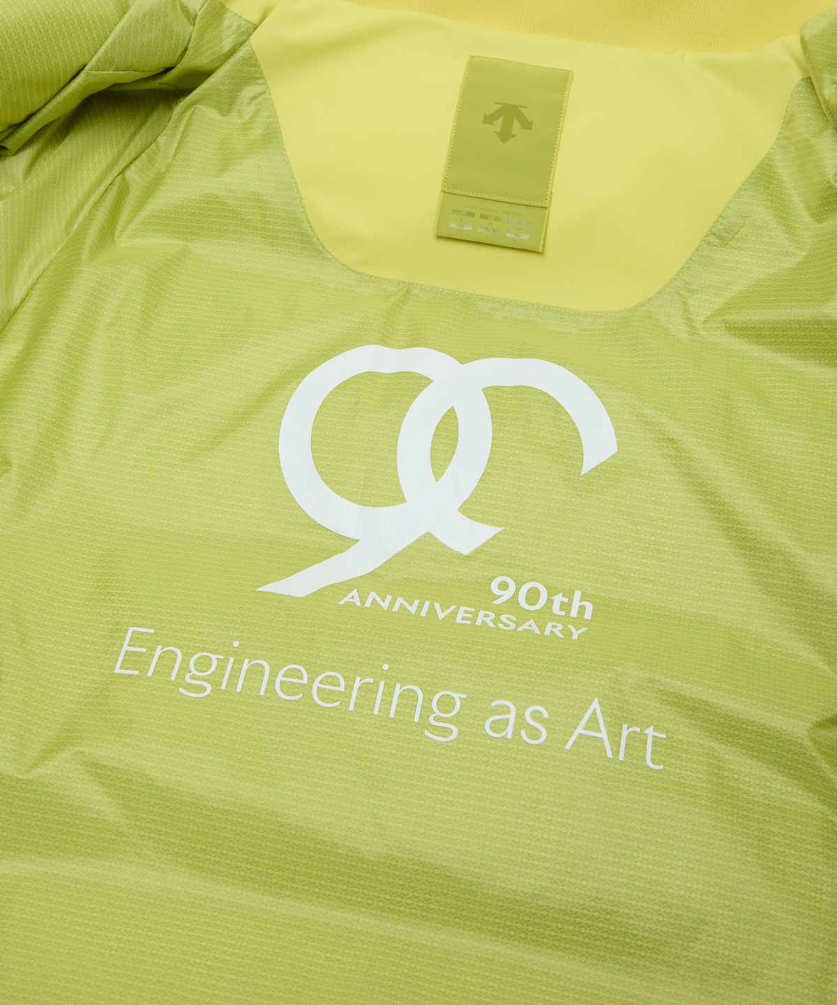 90周年ロゴを裏地にプリントし、左袖にも特殊な加工で記念ロゴを表現。