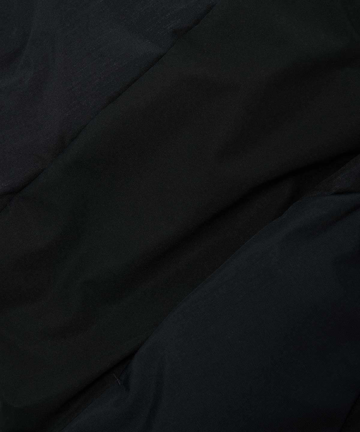 ポケット周囲や脇下には化繊の布帛素材を配置。デザインエッセンスであるとともに摩耗に対する強度補完として機能するハイブリッド仕様。