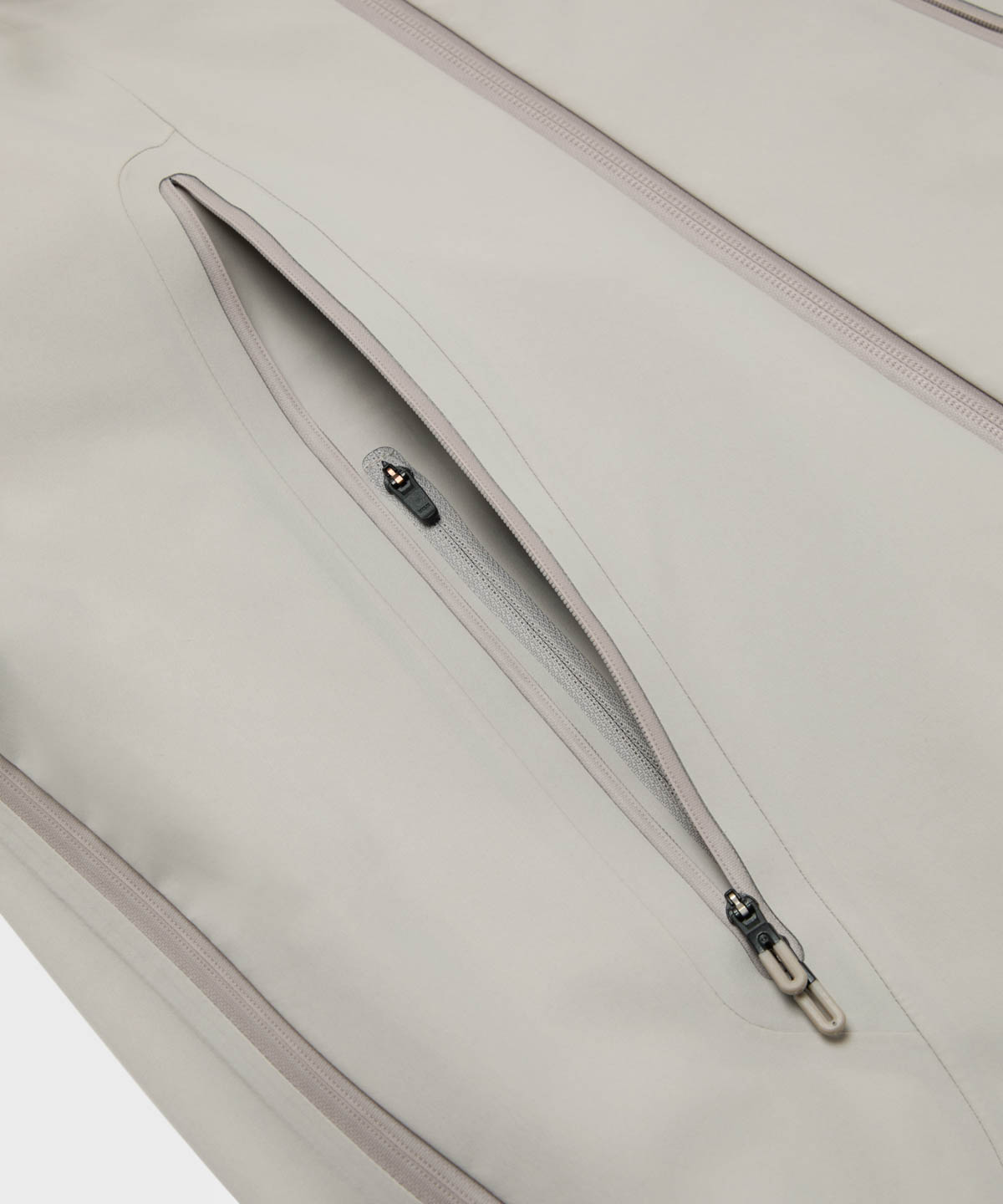 またフードをコンパクトに収納するだけでなく、雨などの悪天候下での着用も考慮しフードへの水たまりを防ぐパラフードシステムを採用。さらに袖口には雨に濡れてもホールド力を保ち、フィット性に優れるブロックフィットアジャスターを装備。