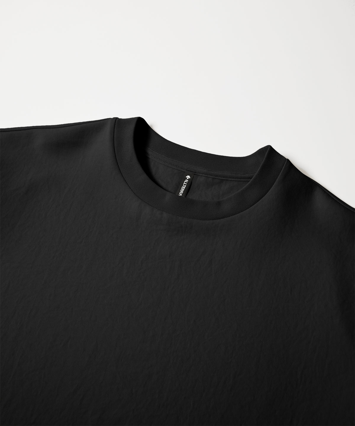 軽量で薄手ながら光沢の少ないフルダル糸を使用することで透け感を抑制。また、優れた吸水性を付与することで様々なシーズン下でも快適な着心地を提供。
