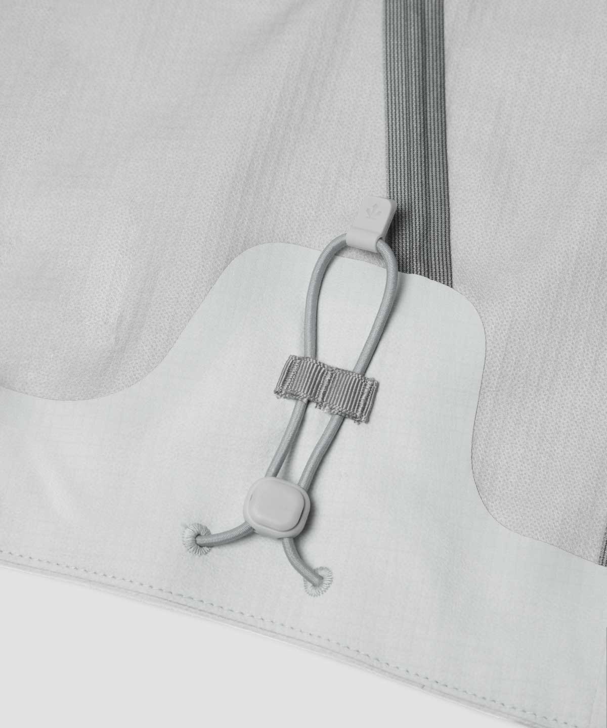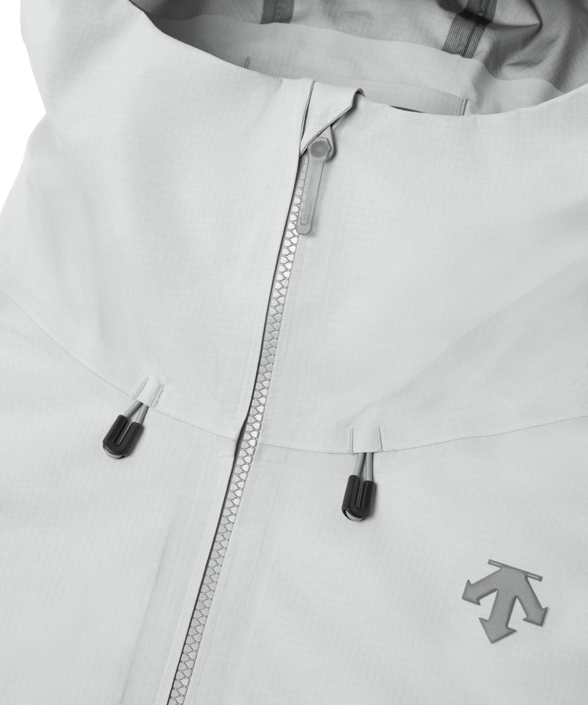フードにドローコードを備え、従来よりも迅速かつ容易にウェアのフィット感を調節する事が可能。