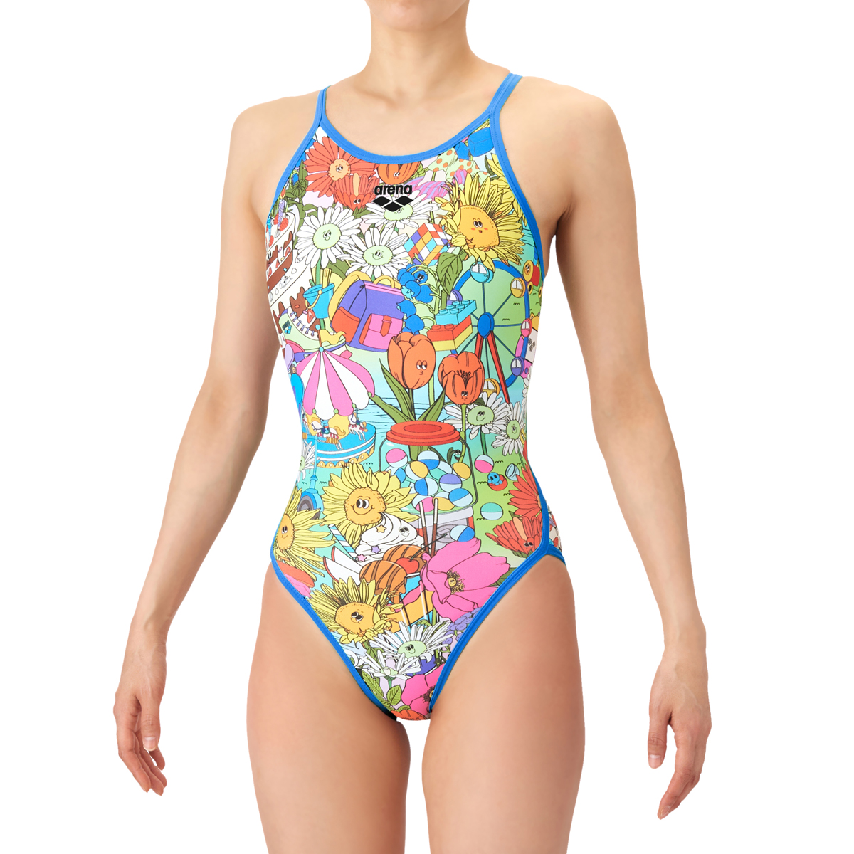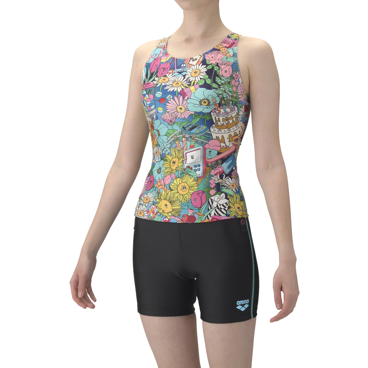 子供の頃に思い描いていた夢の世界を表現した楽しげでワクワクするポップなデザインで、同柄の水着に合わせてコーディネートが可能。