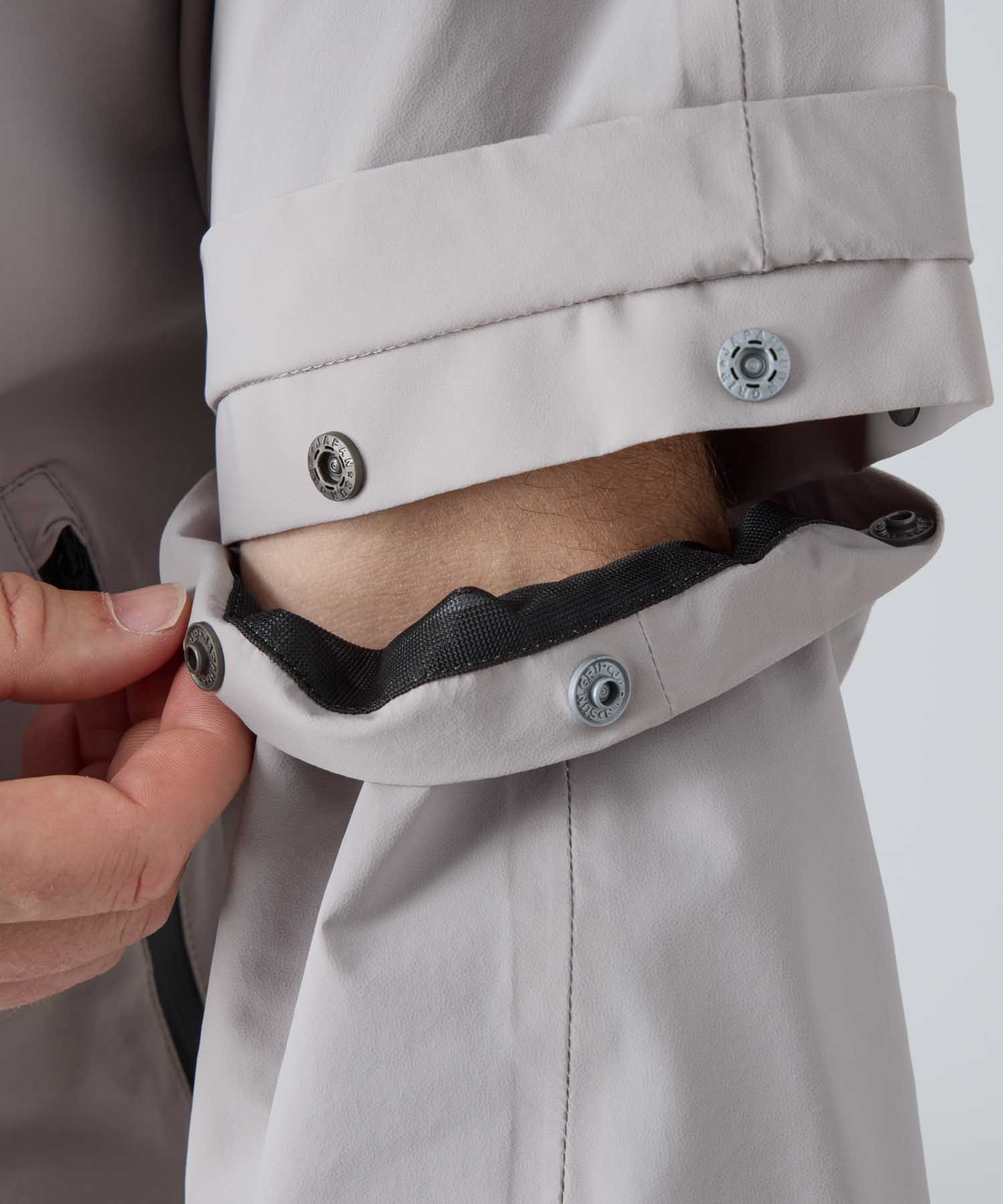 腕部分がデタッチャブル仕様になっており、シーンに合わせて長袖・半袖どちらでも着用可能。