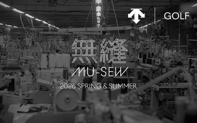 左肩にはスイングの動きを妨げないよう、よりソフトな風合いの素材を使った左右非対称のデザインを取り入れる。