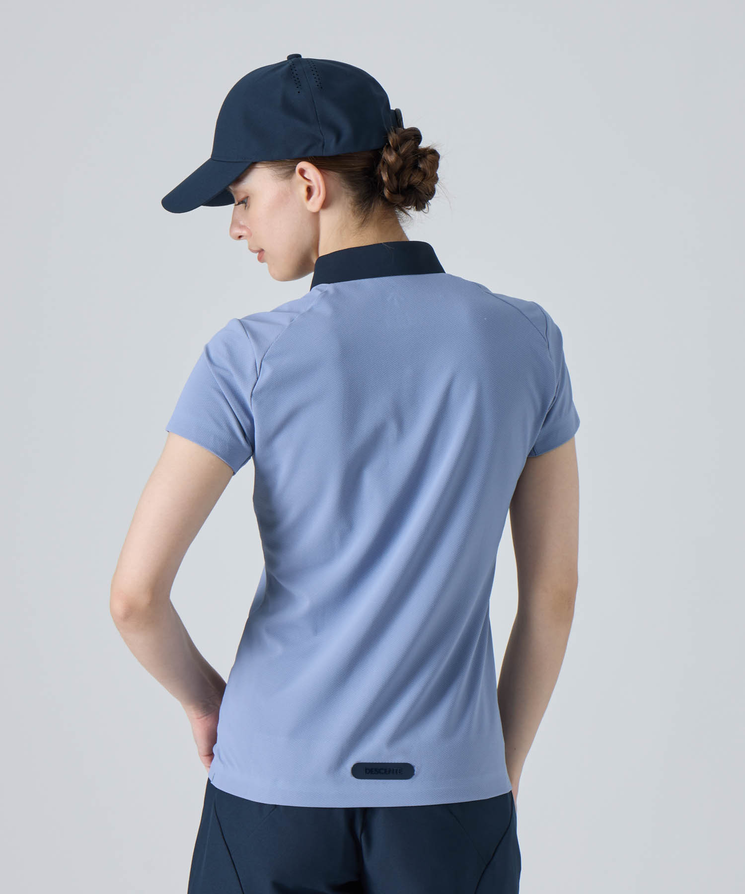 バックセンターの裾には、シャツのずり上がりを防ぐロゴタイプの滑り止めを採用。