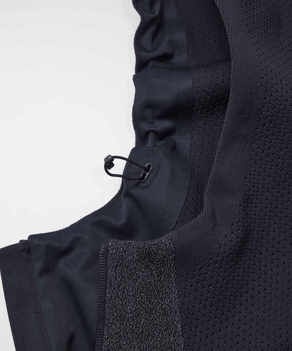 裾部のコードで、従来よりも迅速かつ容易にウェアのフィット感を調節する事が可能。