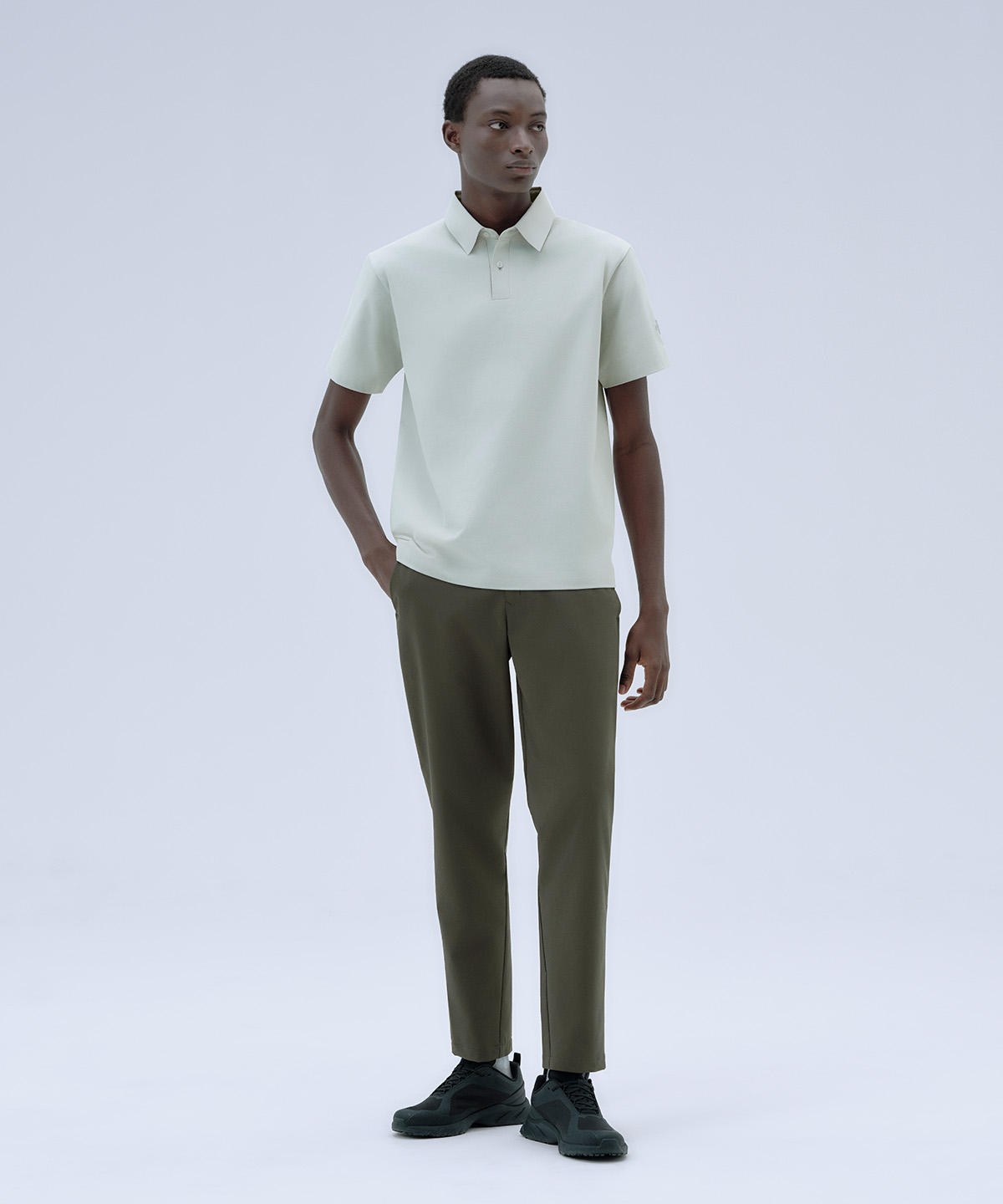 品位ある素材感としなやかなストレッチ性、はっ水性とUPF50+のUVカット性能を併せ持ち、トレーニング時はもちろん日常のシーンまで幅広く着用しやすいアイテム。
