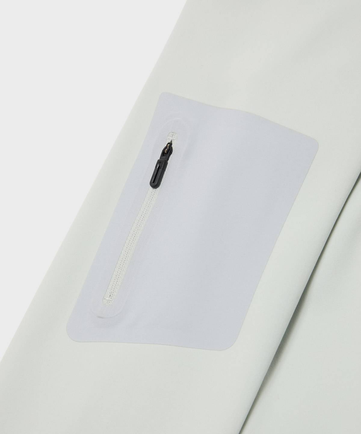 左袖には異素材で切り替えたファスナーポケットを配置