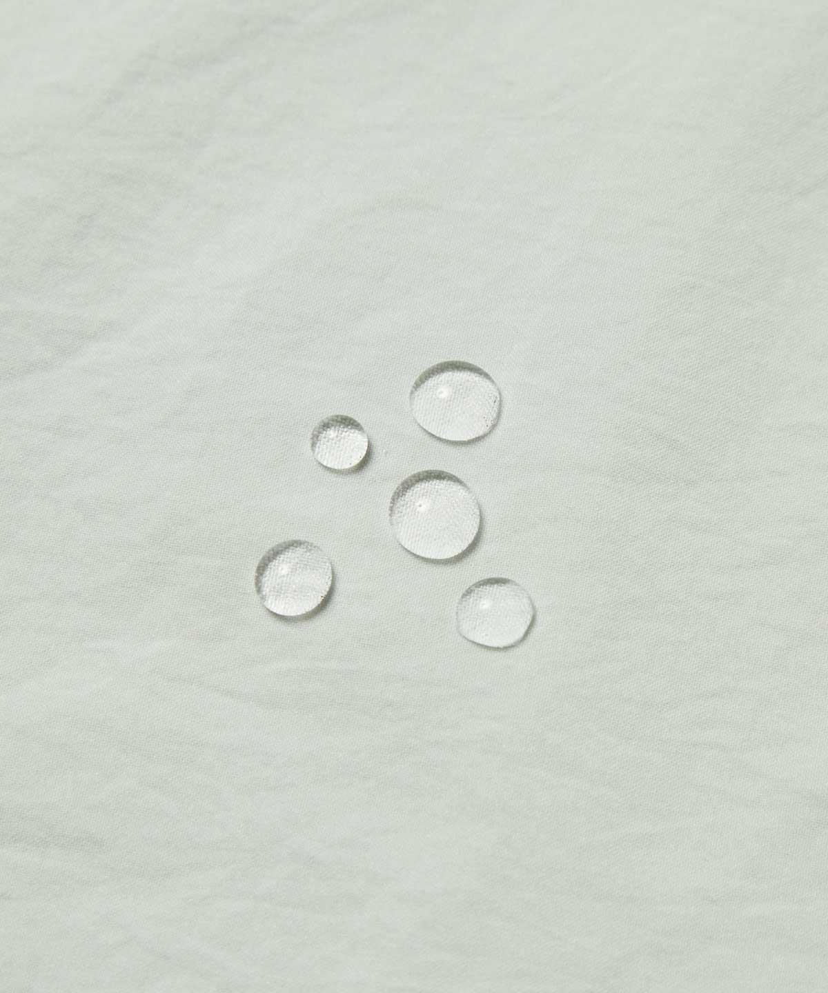 ハリコシのある風合いと高級感のある表面感が特長の素材。しなやかなストレッチ性に加え、はっ水性により悪天候時の小雨を弾く。