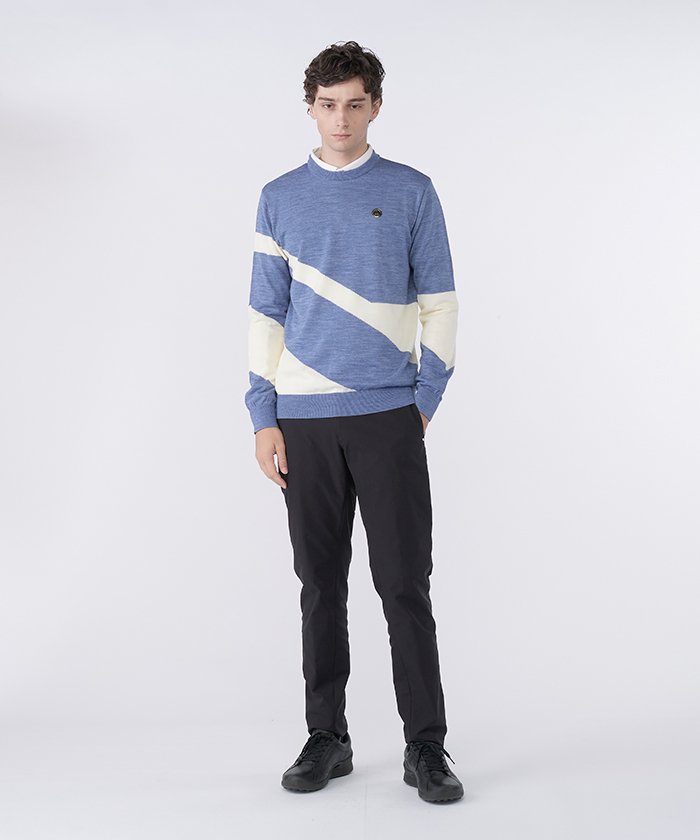 ボトムスストレッチパンツは、デサント独自の「6D理論」に基づき、ゴルフスイングや屈伸運動時の足の動きを科学的に追求。