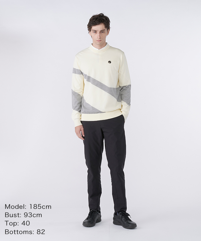ボトムスのストレッチパンツは、デサント独自の「6D理論」に基づき、ゴルフスイングや屈伸運動時の足の動きを科学的に追求。