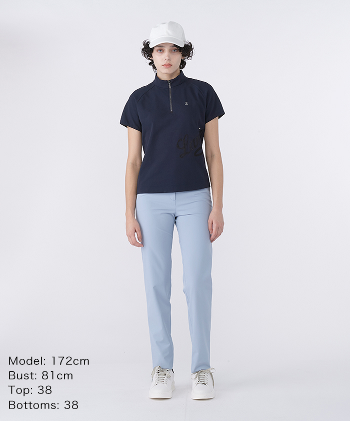 ボトムスのパンツは、後ウエストにラメジャガードゴムを採用することで、優れた履き心地と、着用した際の美しいシルエットを追求しました。