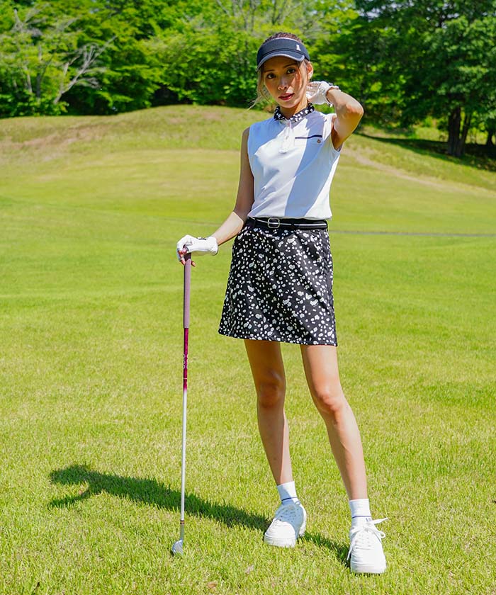 トップスは衿にアニマル調の幾可柄を使用してポイントにしたノースリーブシャツです。