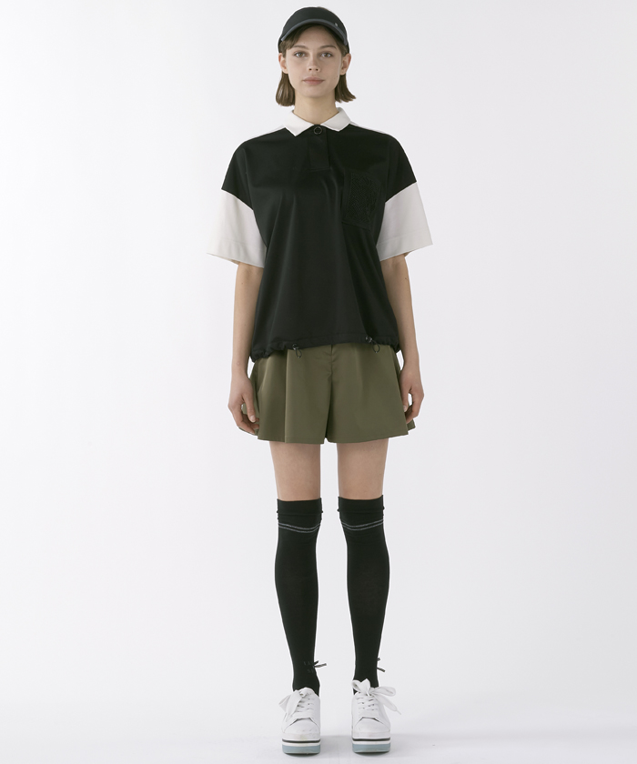 左胸ポケットには、LANVIN SPORTのモノグラム柄をバイアスに配した3D刺繍を施し、光沢感と繊細な加工が上質さを演出します。