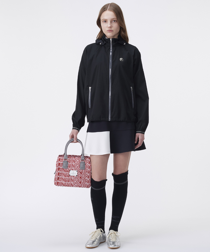 LANVIN SPORTの今季ロゴを総柄で大胆にプリントし、ゴルフ場でも存在感を放つデザインです。