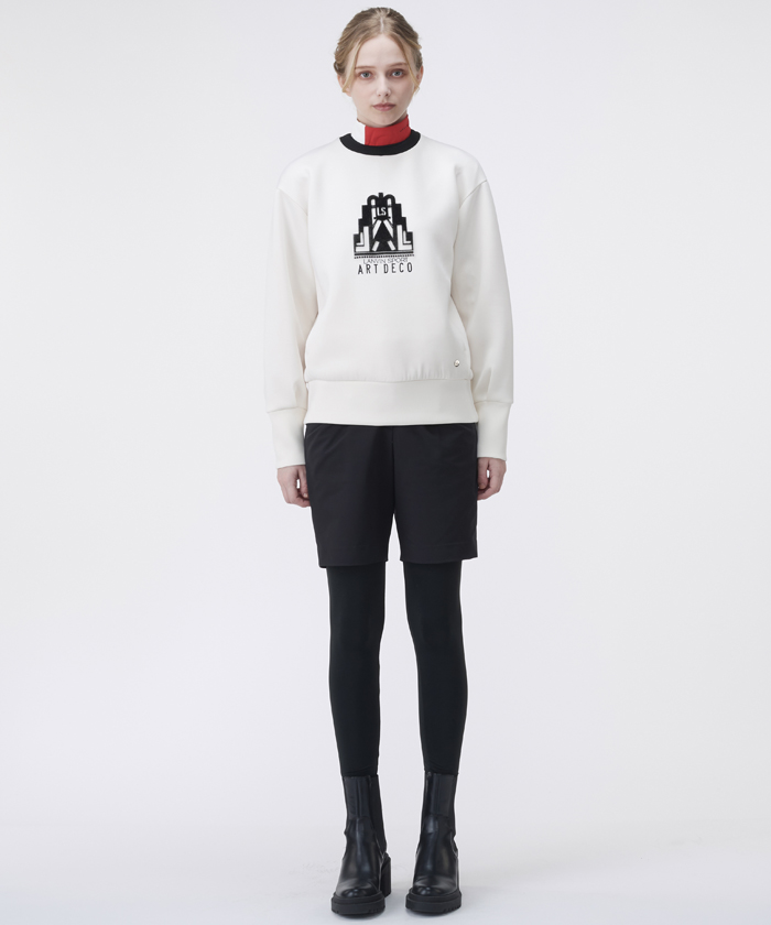 トップスは、パリ万国博覧会開催100年を記念し、PARIS LANVIN社が制作したアール・デコモチーフをワンポイントに配したビッグシルエットプルオーバーです。