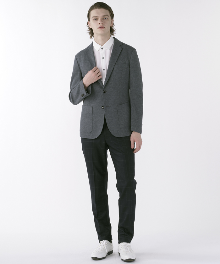 トップスは、クラブハウスはもちろん、多様なシーンで活躍する2つ釦のテーラードジャケットです。