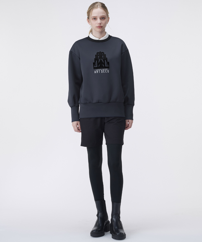 トップスは、パリ万国博覧会開催100年を記念し、PARIS LANVIN社が制作したアール・デコモチーフをワンポイントに配したビッグシルエットプルオーバーです。