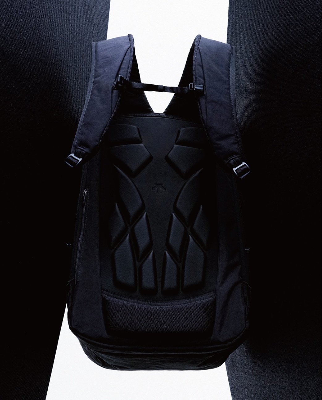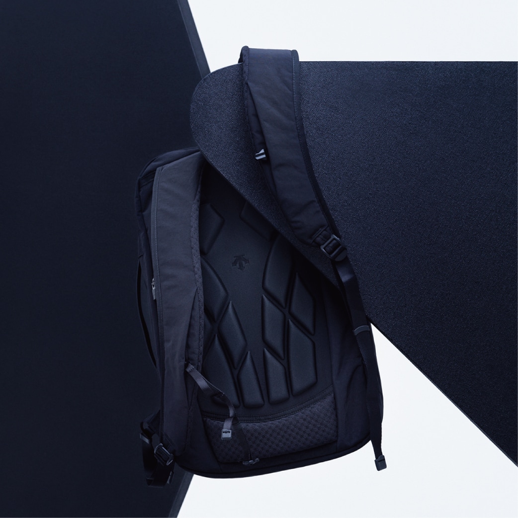 背中に空気の出入り口をつくり、換気効果を促す。背面のオリジナルの立体成型バックパネルと腰部クッションが、身体へのフィット感を高めながら、背中との間にスペースを形成。背中との間に隙間を作ることで、ムレを軽減するベンチレーション設計。