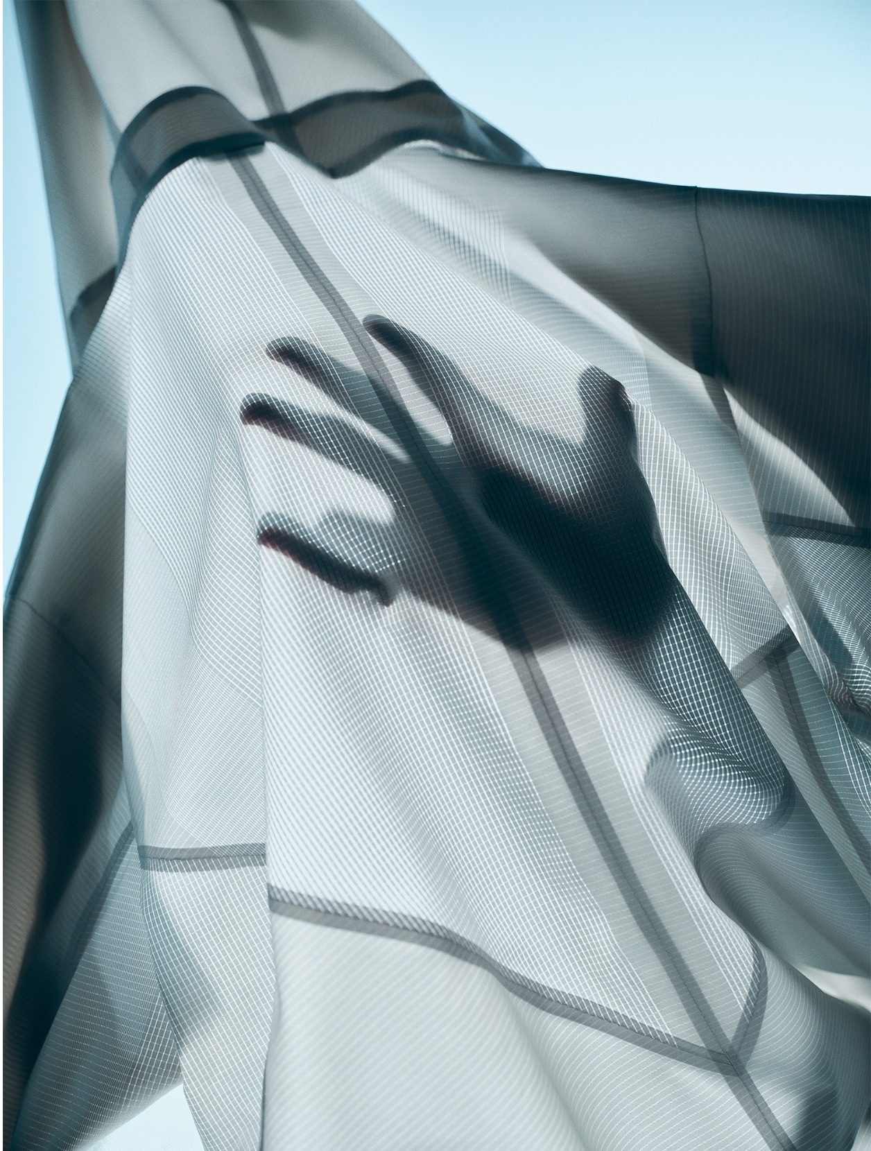 熱と汗の分布を解析し、生地構造で応える。スウェットマッピング理論※1をもとに、発汗量や熱のこもりやすい部位を可視化し、1枚の生地の中で通気性と遮熱性を段階的に切り替える布帛素材。防透け性と遮熱性を併せ持つ機能糸を用いて、通気が必要な箇所ほどメッシュ密度を粗くするグラデーション構造を採用。さらに生地の接触冷感機能に加え、UV(紫外線)とNIR(近赤外線)をカットする「Sunscreen NIR」を組み合わせることで太陽光をブロックし、ウェア内部の温度上昇を抑え-3℃差のクーリング機能を発揮。太陽熱を遮り、風を通し、肌に触れた瞬間に涼しい。遮熱・通気・冷感を一体化した、夏のためのハイブリッドウェアです。