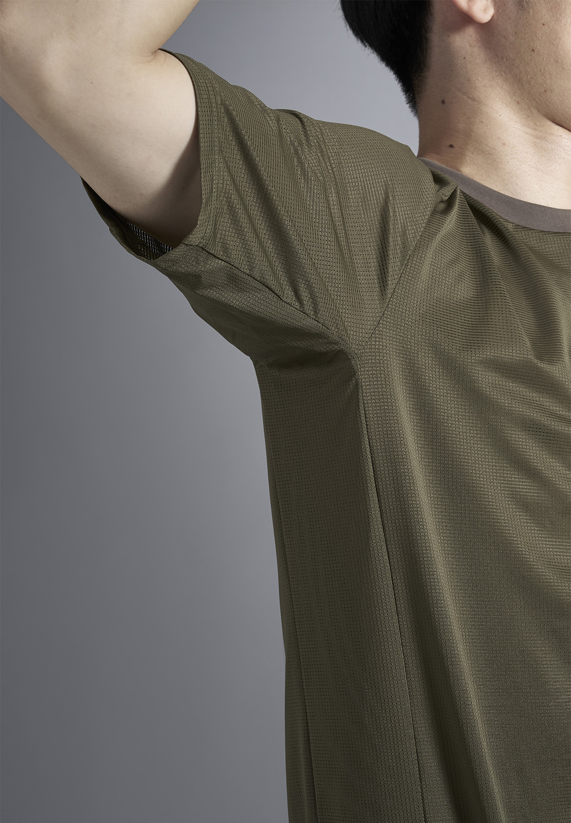 通気性を阻害しないよう、抜きプリントにしている点もデザインポイント。