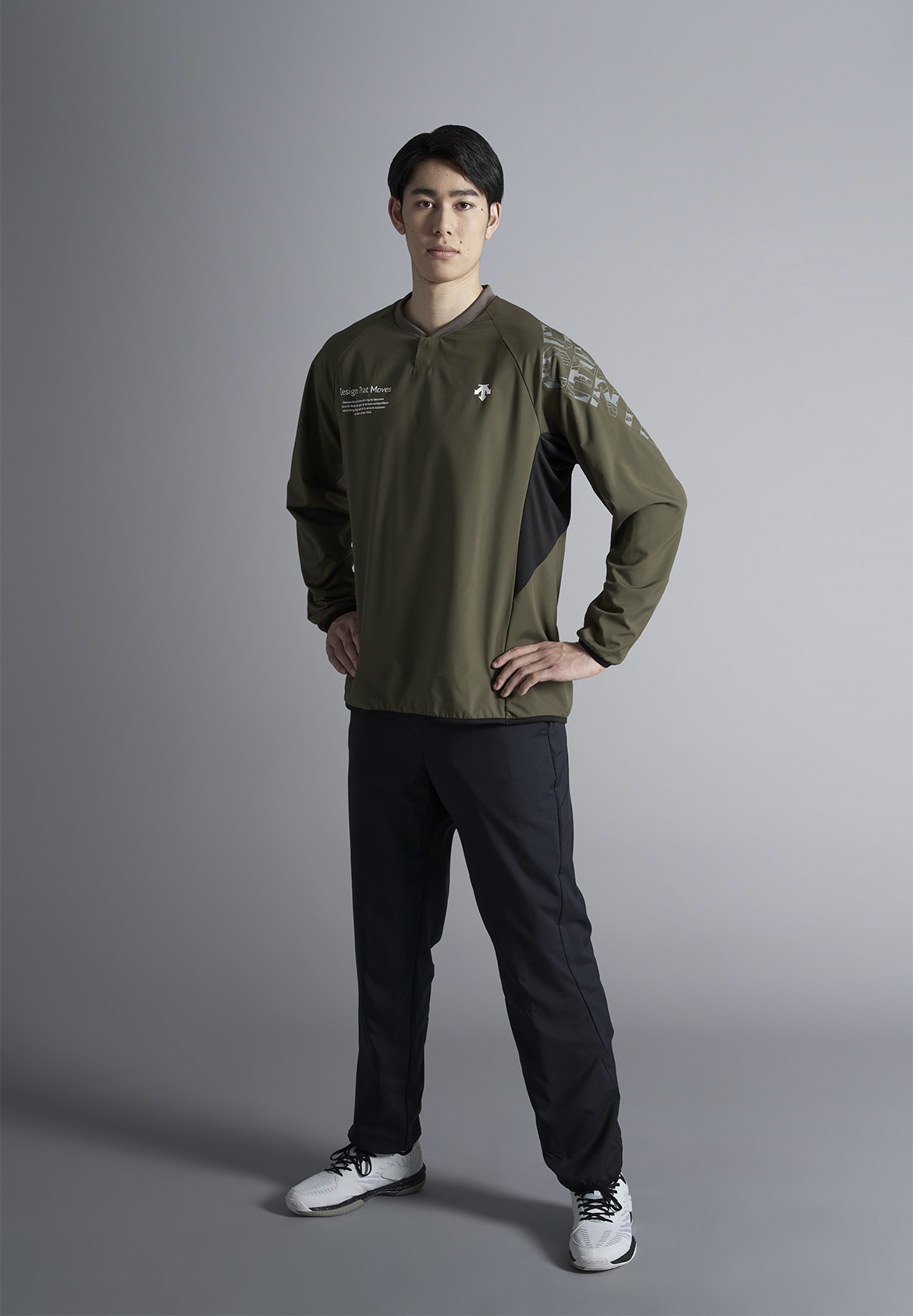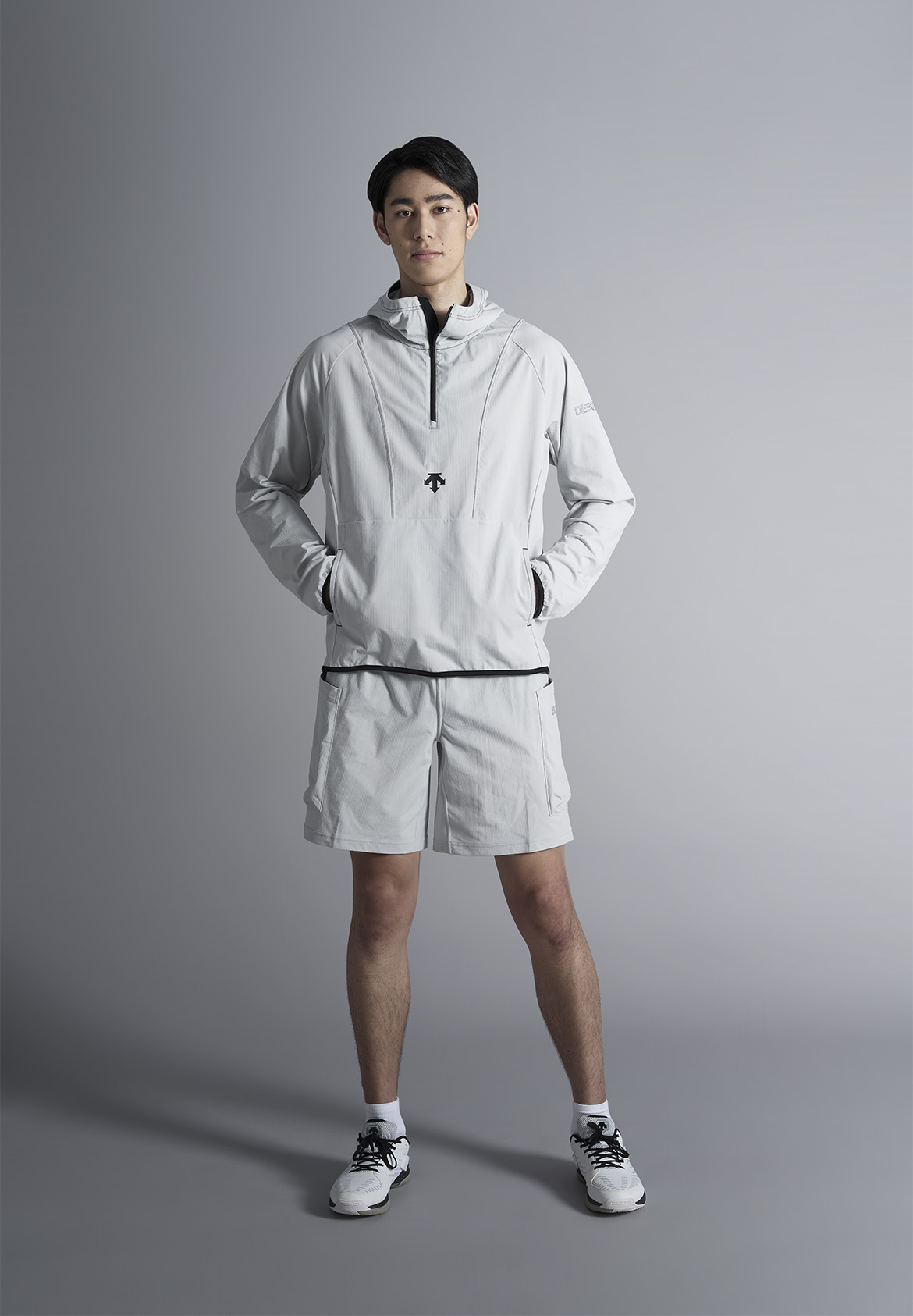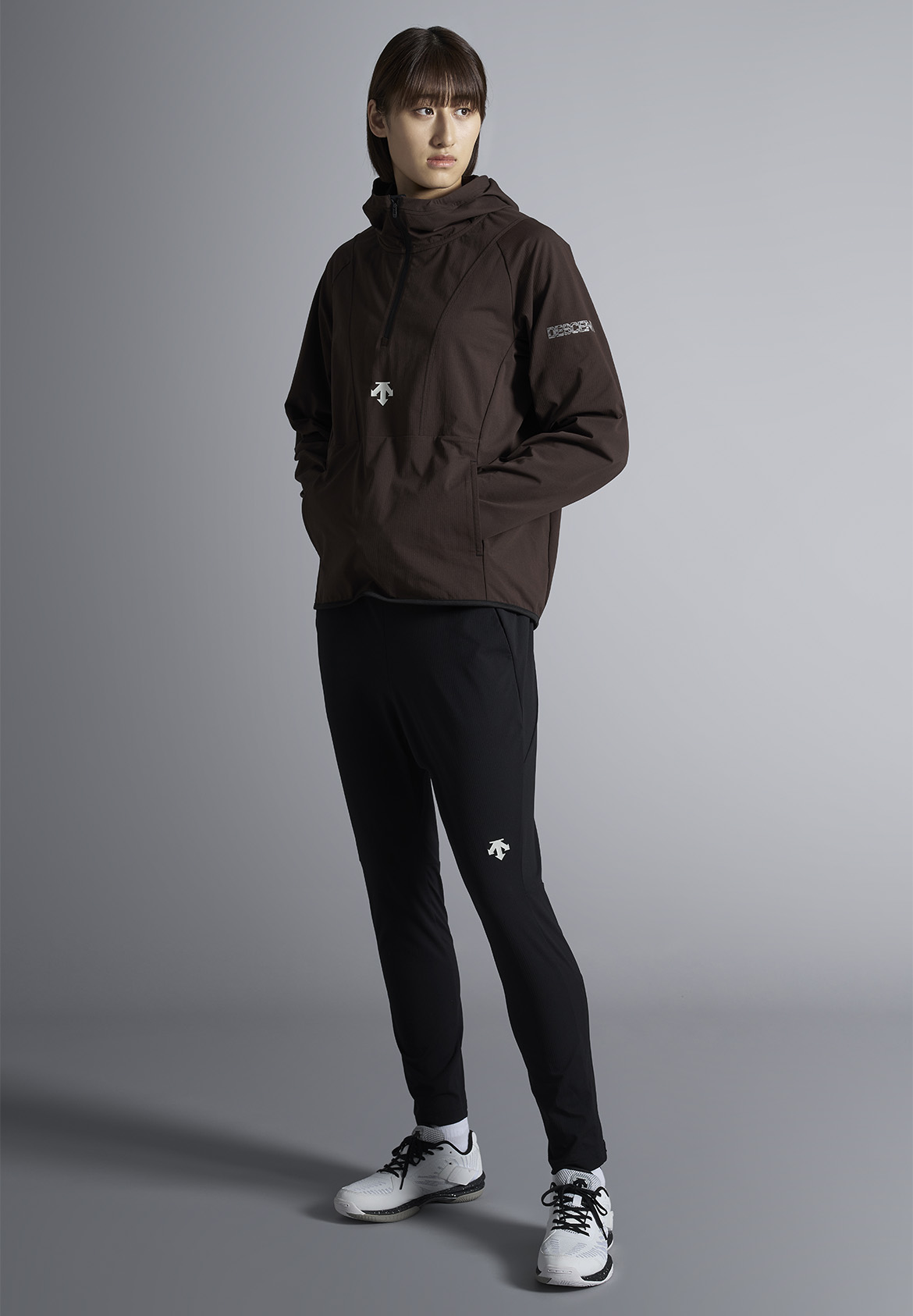 ストレッチ・防風・吸汗速乾機能を備えた素材で、アップから移動まで快適にサポート。