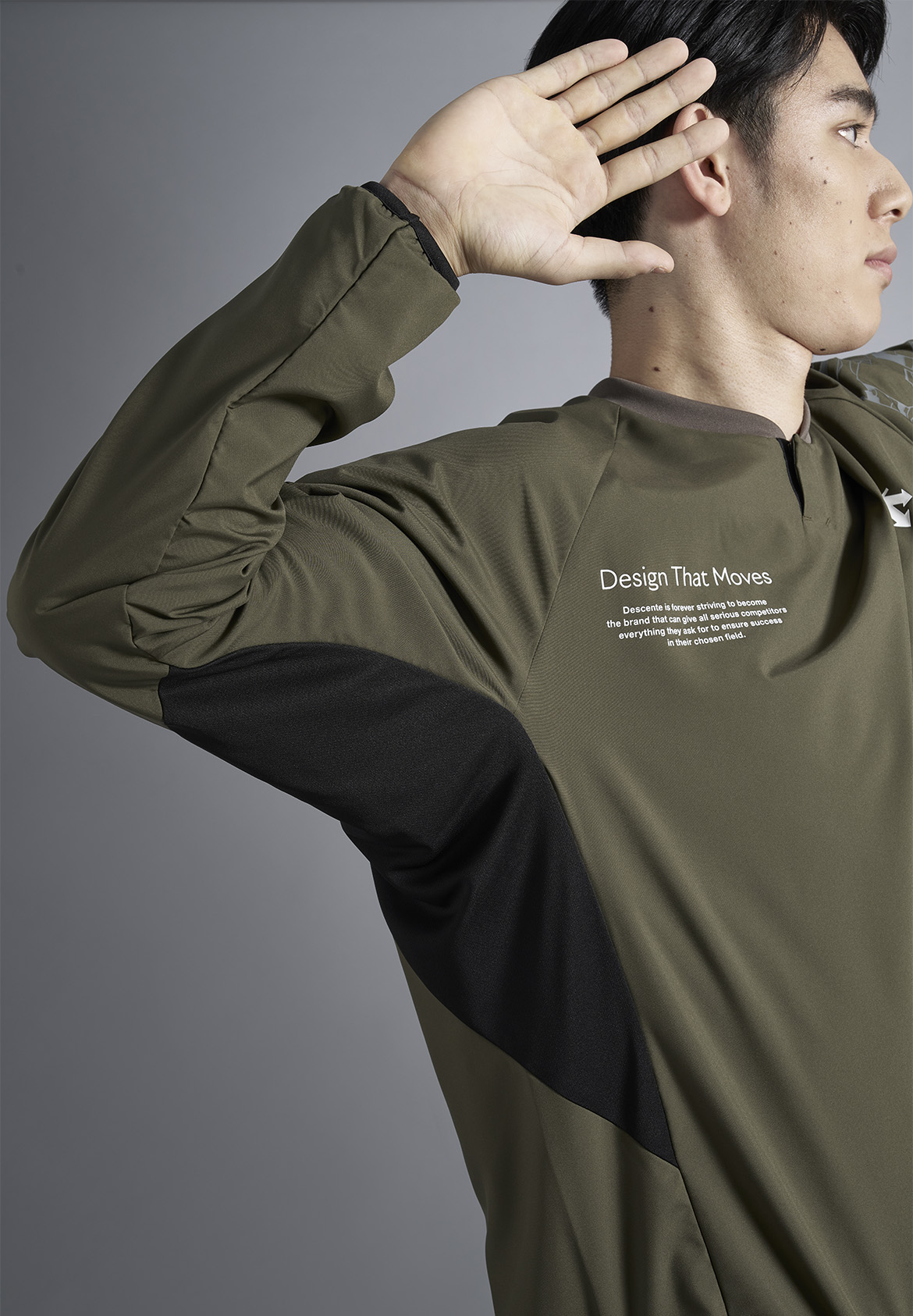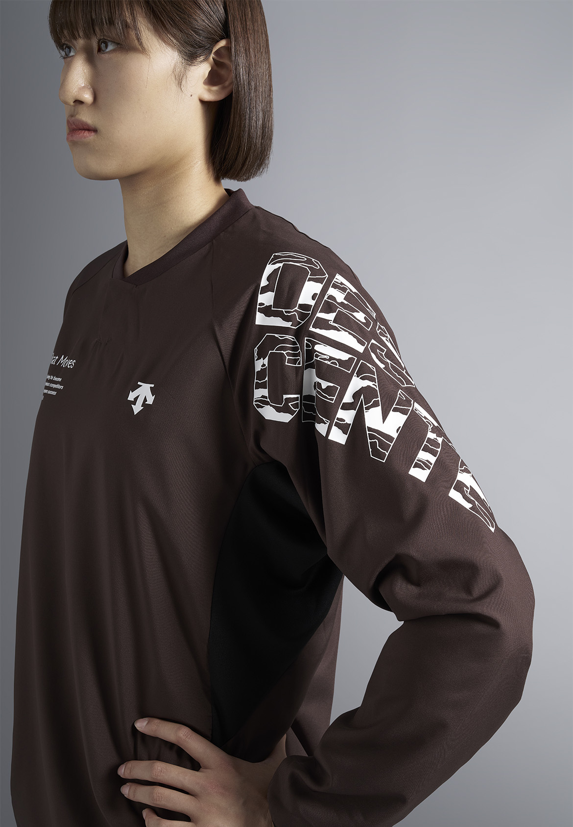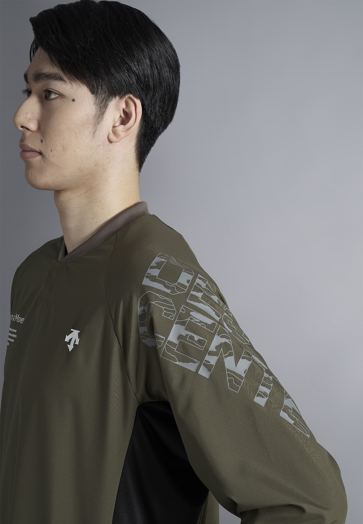 さらに、肩口にあしらった迷彩プリントがデザインのアクセントとなり、秋冬のスポーツシーンや日常使いにも最適です。