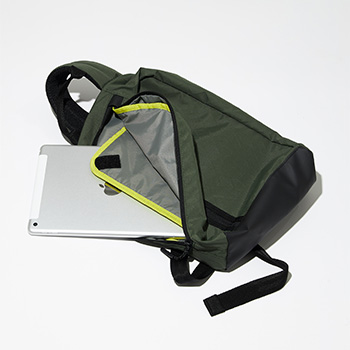 メインルームには15インチまでのPCがすっぽりとはいるPCポケットを配置。出張の時も使いやすい仕様に。