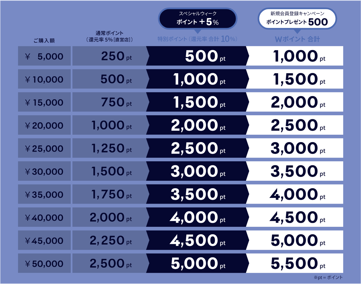 イベント期間中、ポイント還元率が合計10%になります。百貨店、アウトレット店でのご購入はイベント期間中、ポイント還元率合計6%になります。