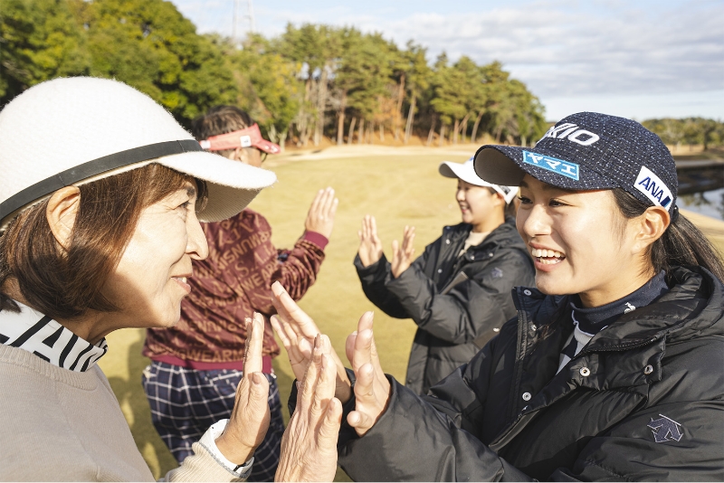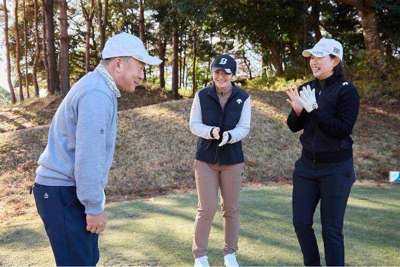 荒川 怜郁プロ、菅沼 菜々プロ、橋添 穂プロ、小祝 さくらプロ、内藤 雄士プロコーチ