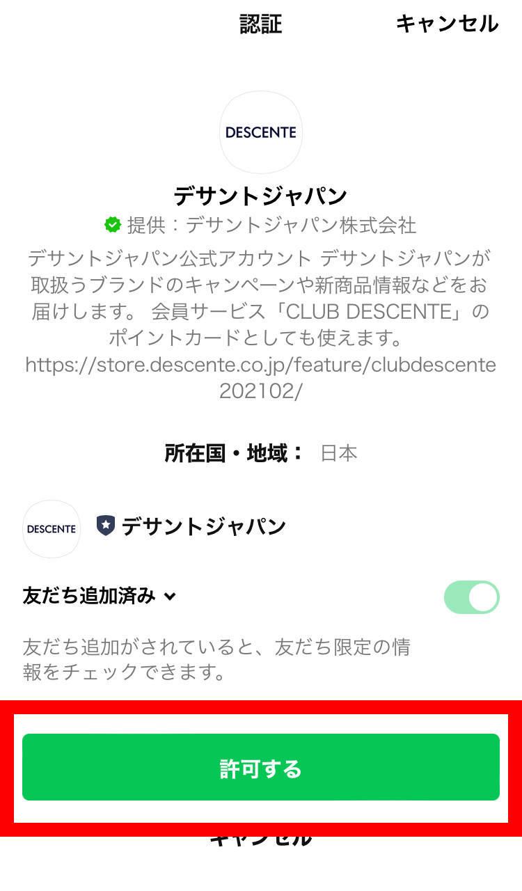 CLUB DESCENTEの登録情報とLINEを連携すると