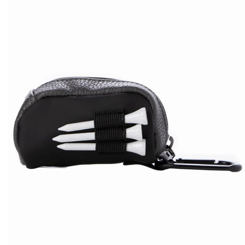 マットな質感の合皮と表情のあるシュリンク合皮をブロッキングで使用しています。異素材の組み合わせが特徴的な商品。ボールポーチは大きめの金属ロゴがポイント。配色感も上品な仕上がりになっています。ボール2個用、ティー刺し有。(※ティー3本付き)