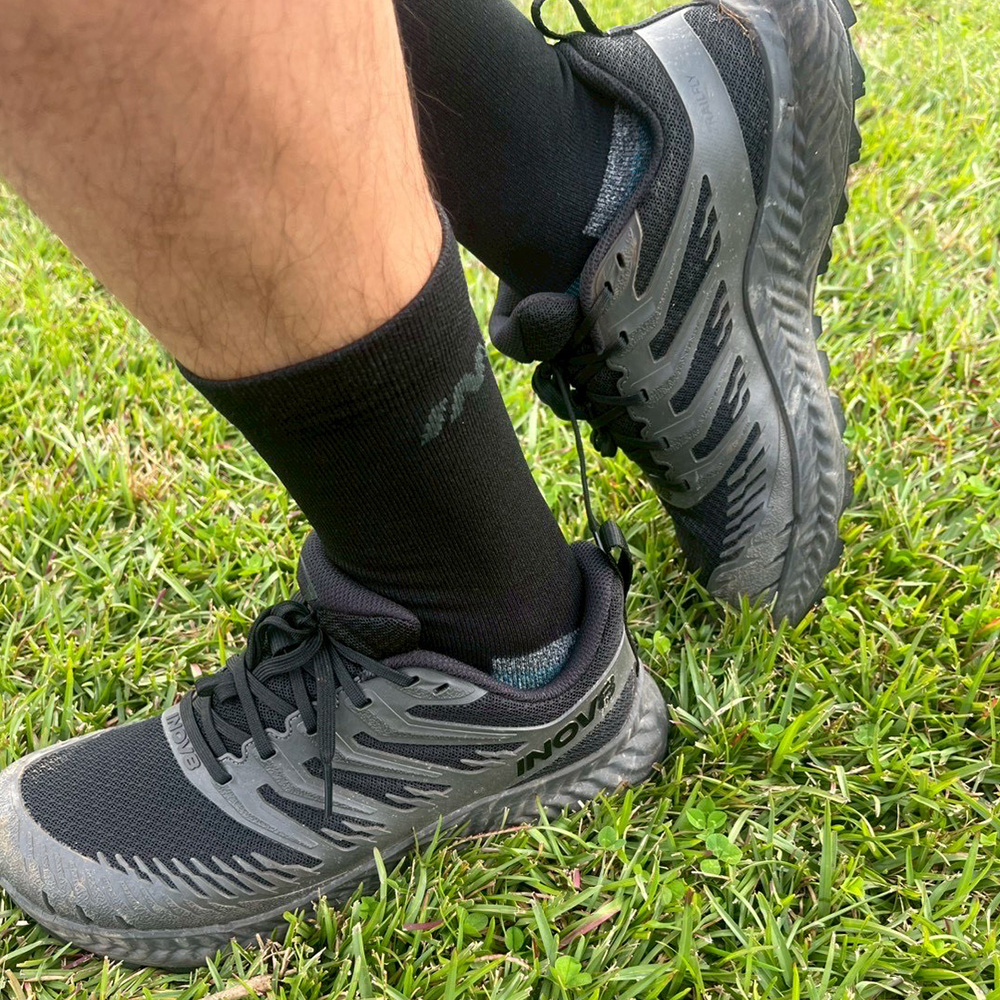 グリップ力に関して言えば、急な登りも下りもしっかり地面を掴んでいる感覚があるのでとても走りやすい。それでいて耐久性もあり、接地感もストレスなく走れるため50km以上のロングトレイルにも対応できるのではないかと思います。