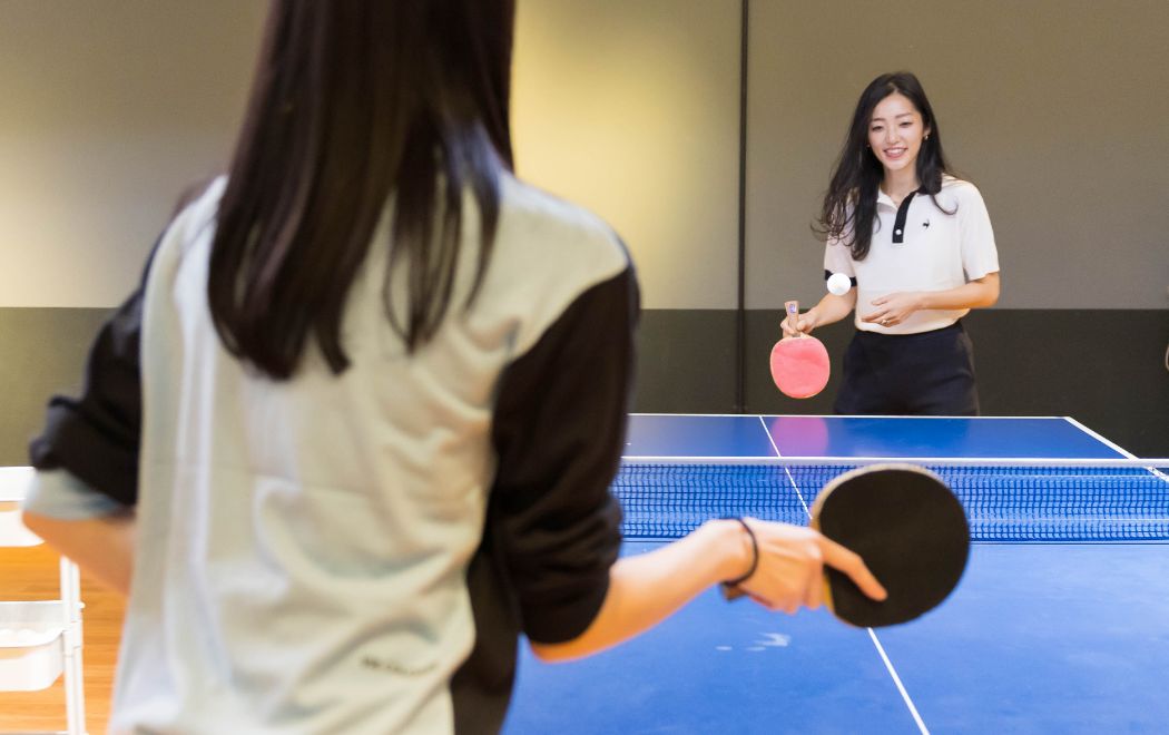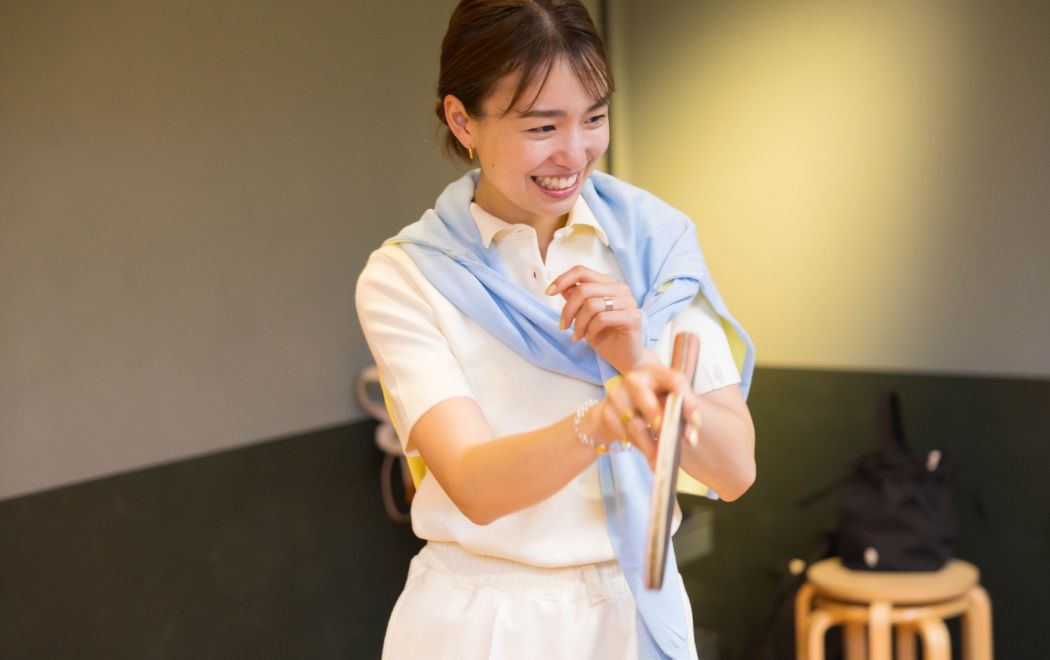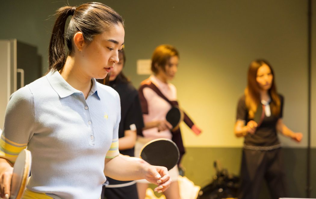 “le coq sportif CLUB”の第4回目の活動は、温泉やレジャー施設などで遊びとして楽しんだことはあっても、スポーツ種目として基礎から学んで、実戦まで行うのは初となる卓球。今回は全国に卓球施設を展開し、レッスンを行うタクティブにて、渋谷店の店長・三村さんとチーフコーチである西田さんが初歩的なレッスンを丁寧に行なってくださりました。