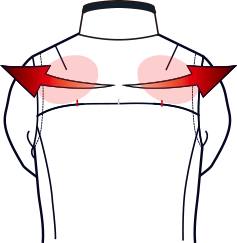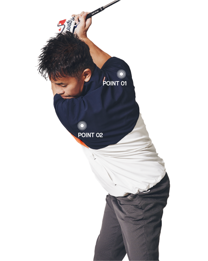 肩甲骨背中に入れたダーツが空間を生み、アドレス、トップ時のツッパリ感を軽減。