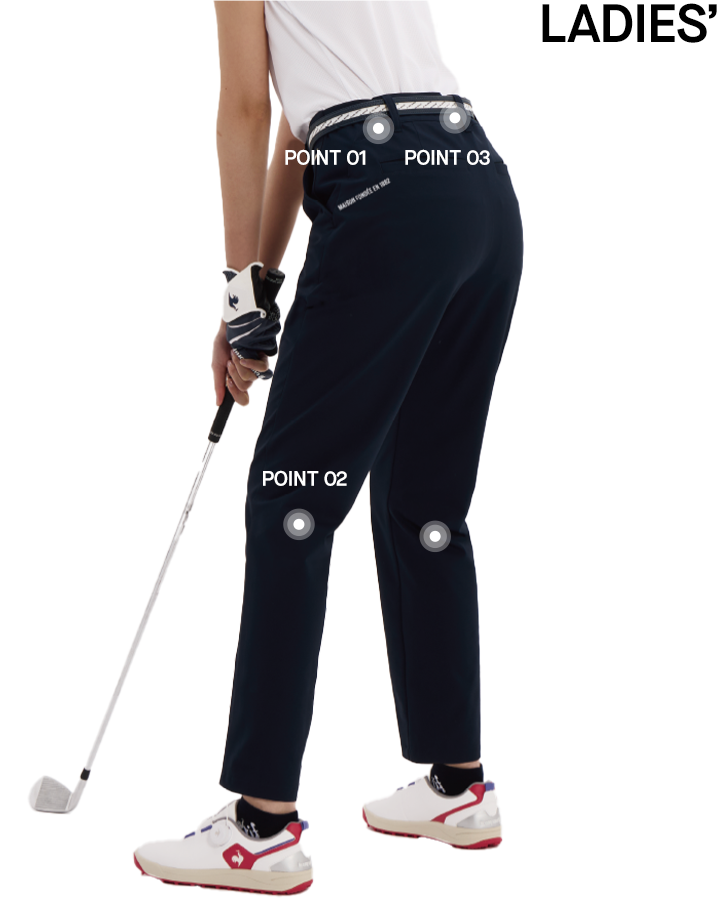 ウエスト脇部分に伸縮素材を使用することでフィット感が向上。