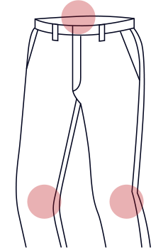 膝の曲げ伸ばしのストレスを軽減するカッティングと、シャツの 飛び出しを軽減する滑り止めゴムを搭載。