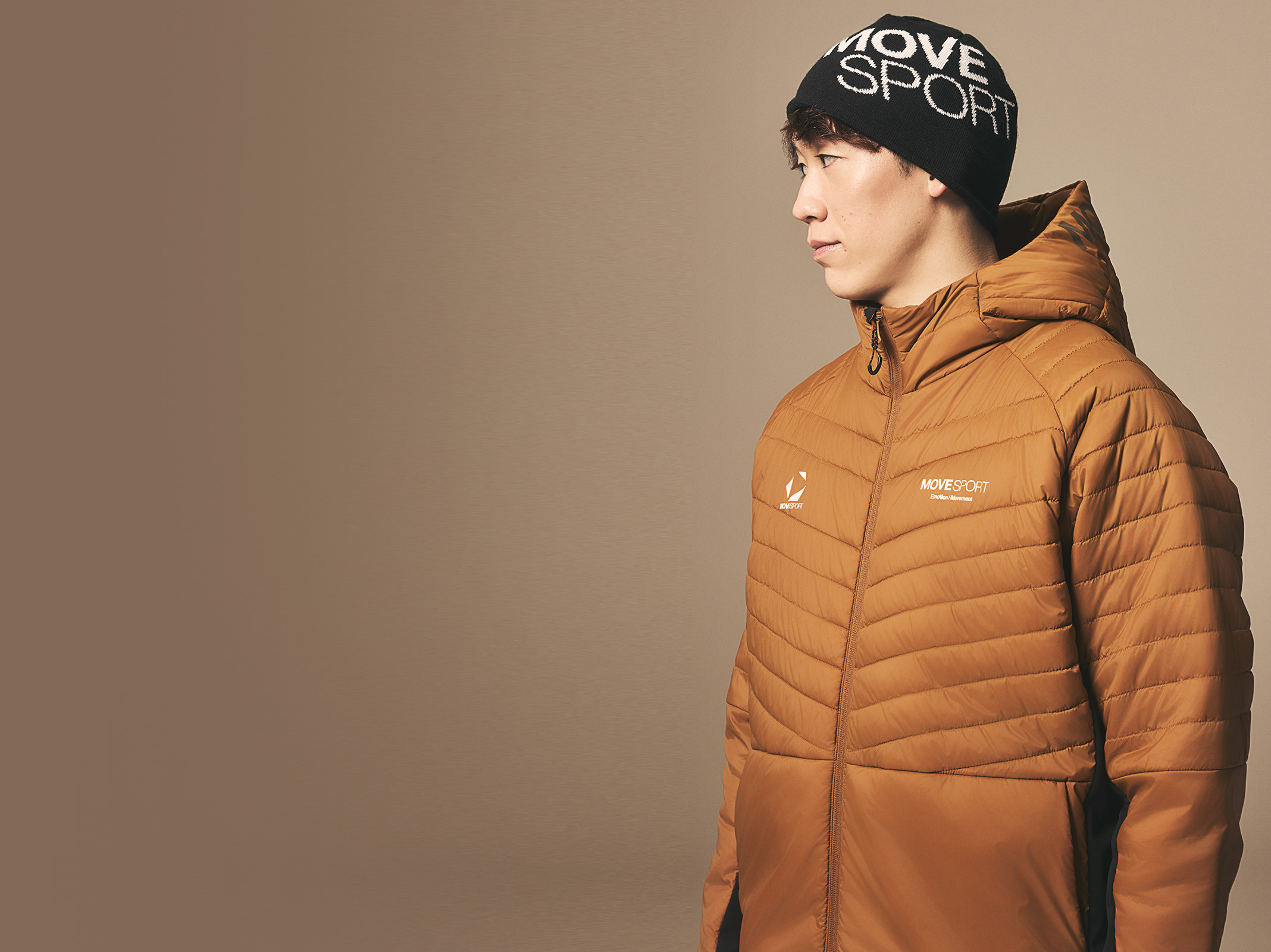 吸湿発熱中綿を採用した、冬に最適なアクティブスーツ。