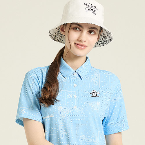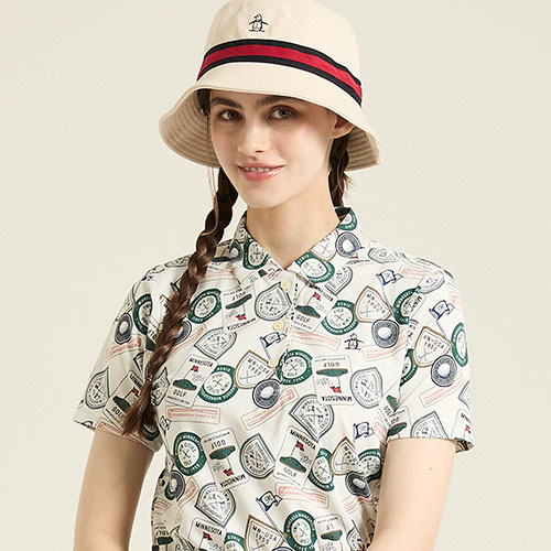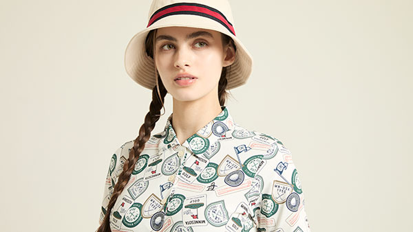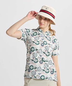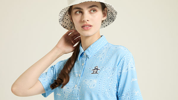 基調としたグラフィックポロシャツ。