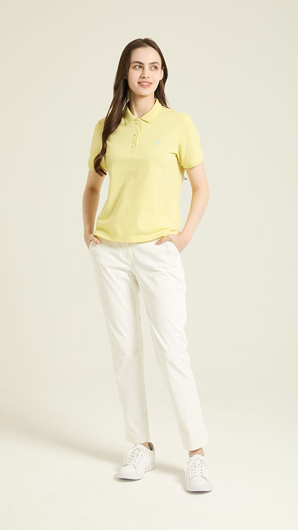 アクセントのポロシャツスタイル。