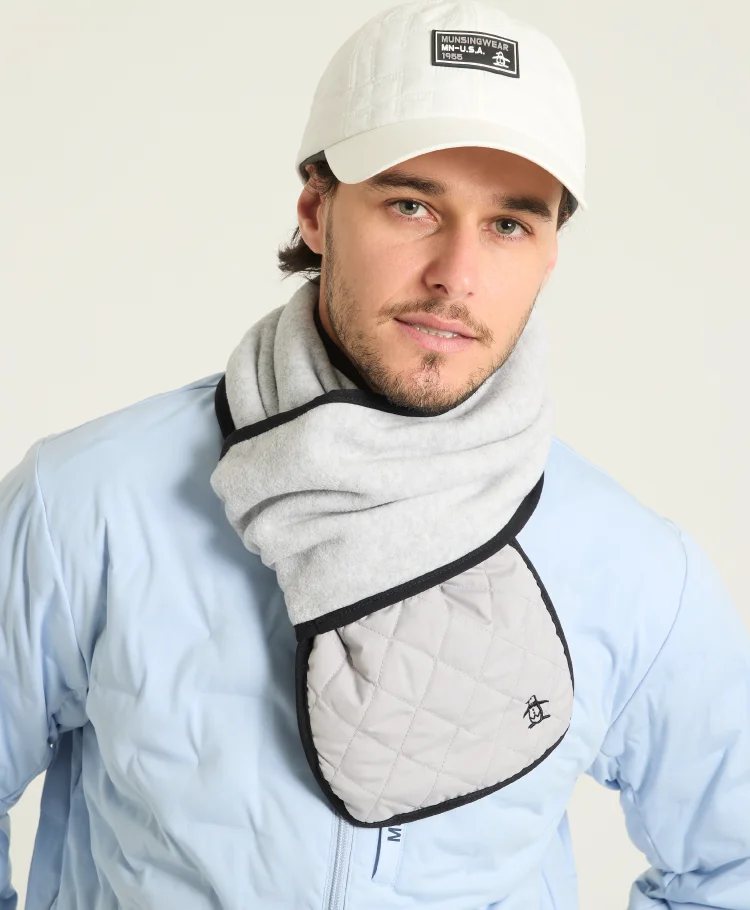マフラーとして使用したりポケット部分に冷えた手を入れハンドウォーマーとしても使用できる、フリースとポケットのコンビ商品。