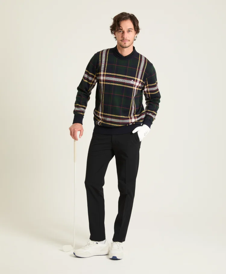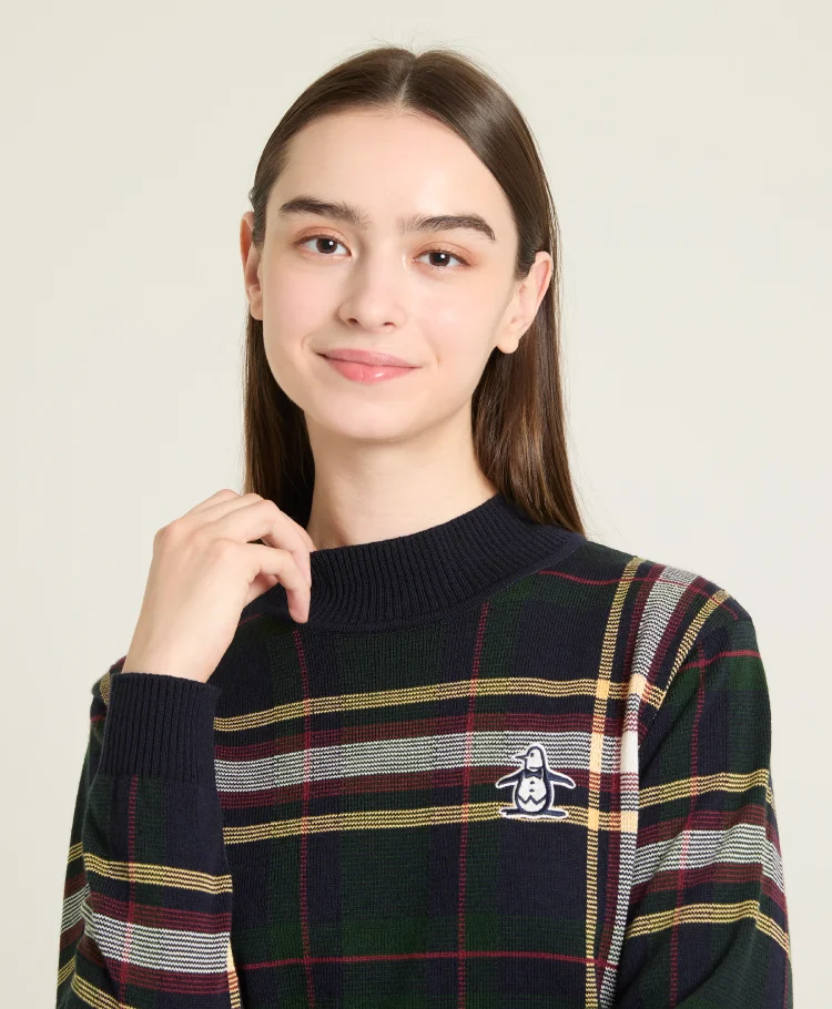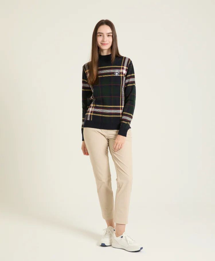 ゴルフ場をモチーフにした配色のハイネックセーター。ネイビーは70周年記念のキンロックアンダーソンオリジナルタータンチェック柄です。