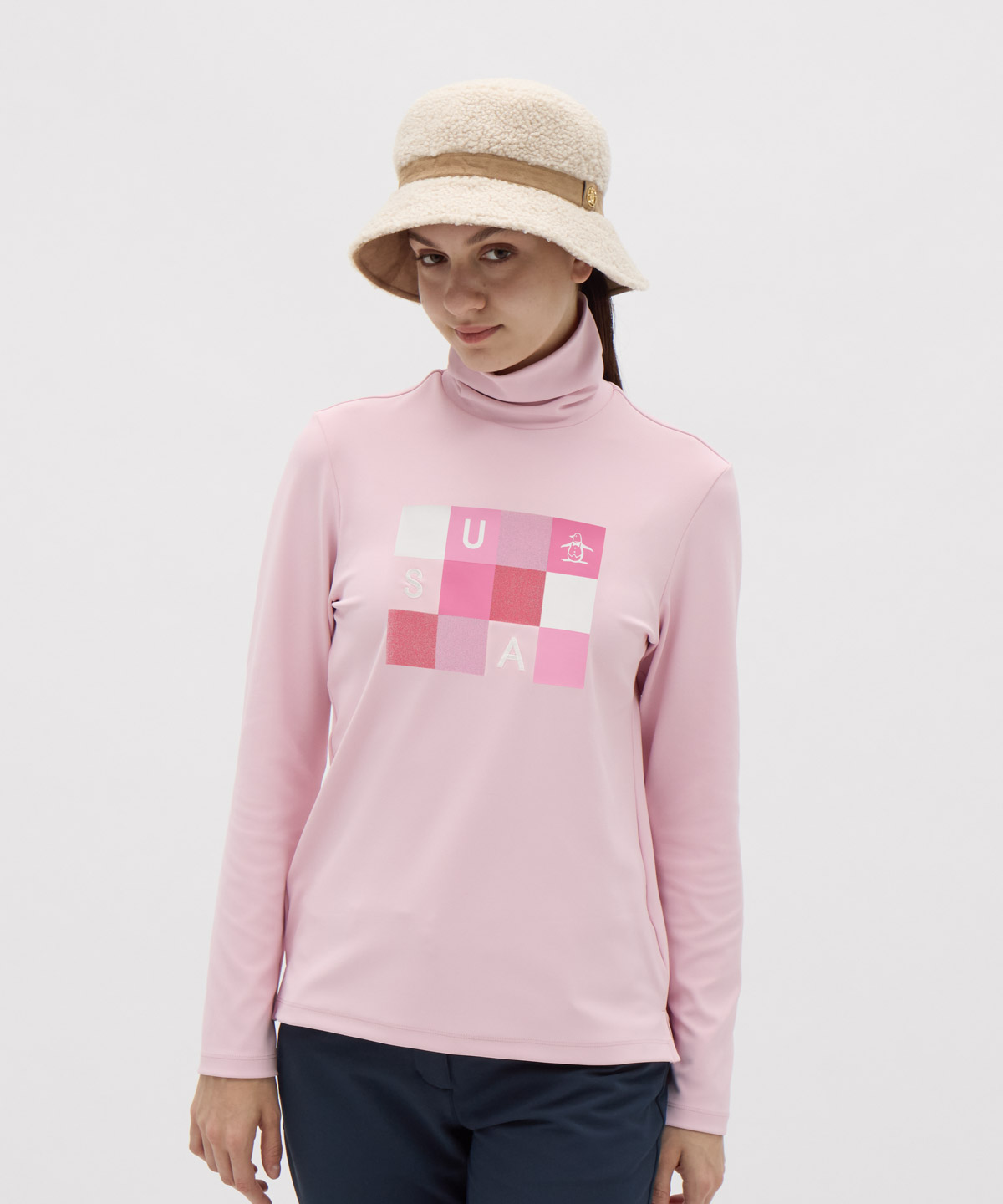 防風ストレッチラメパネルプリントタートルネック長袖シャツ